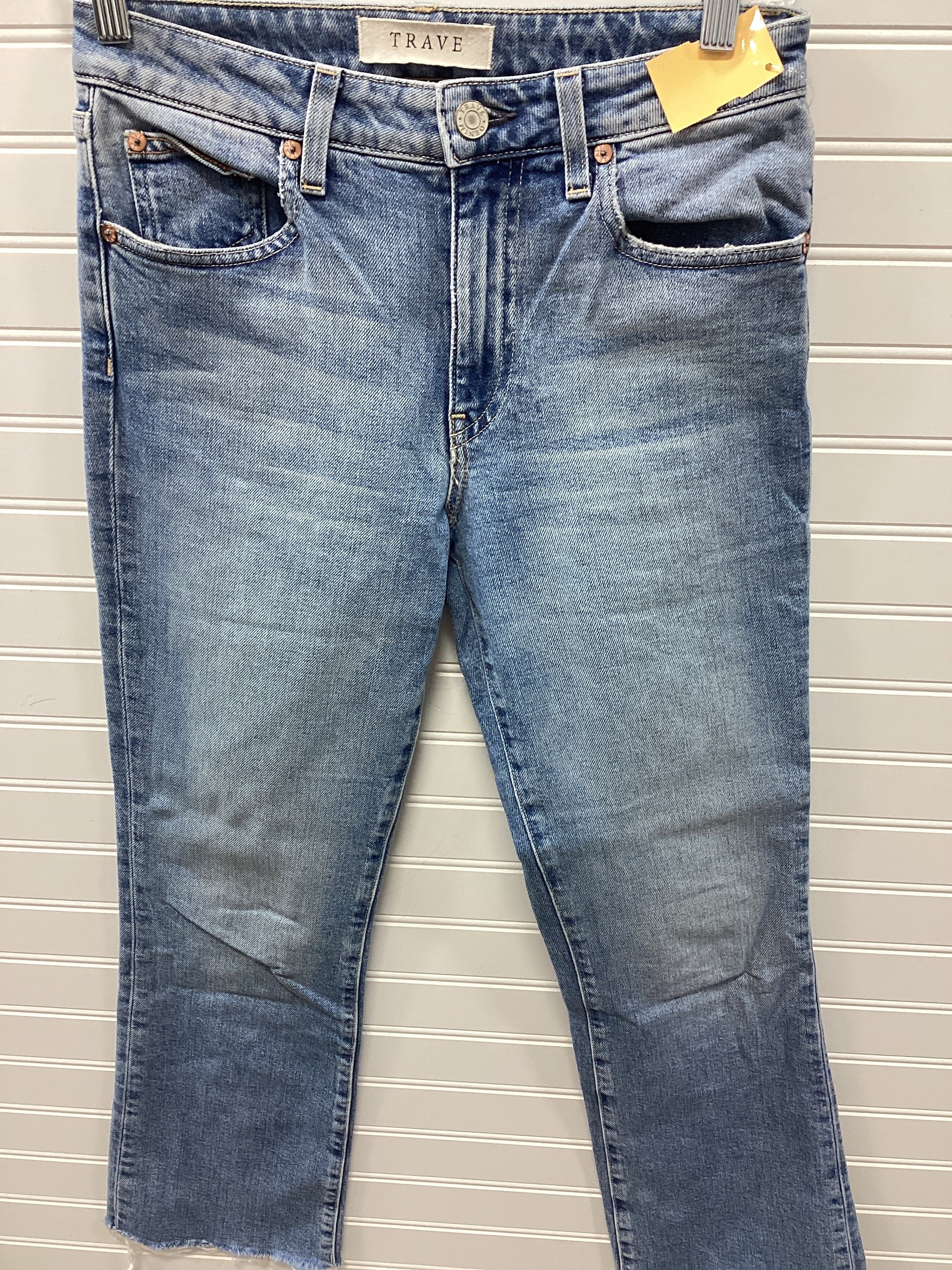 Rock your look with CMB's Blue Denim Cropped Jeans in Size 2. Distressed details and a snug fit make these a standout choice for trendy fashionistas.