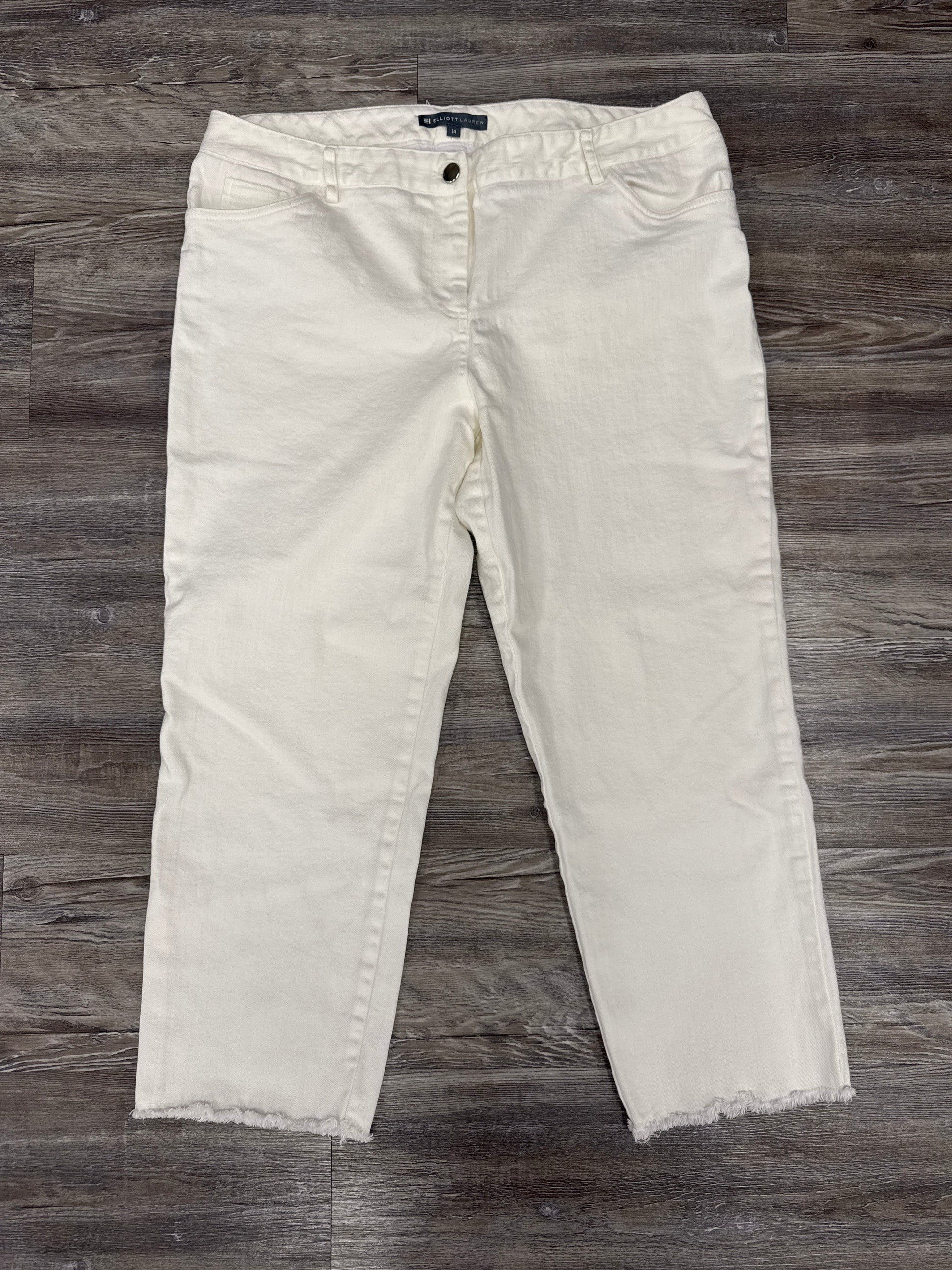 White denim jeans, size 14, by Elliott Lauren: timeless, chic essential.