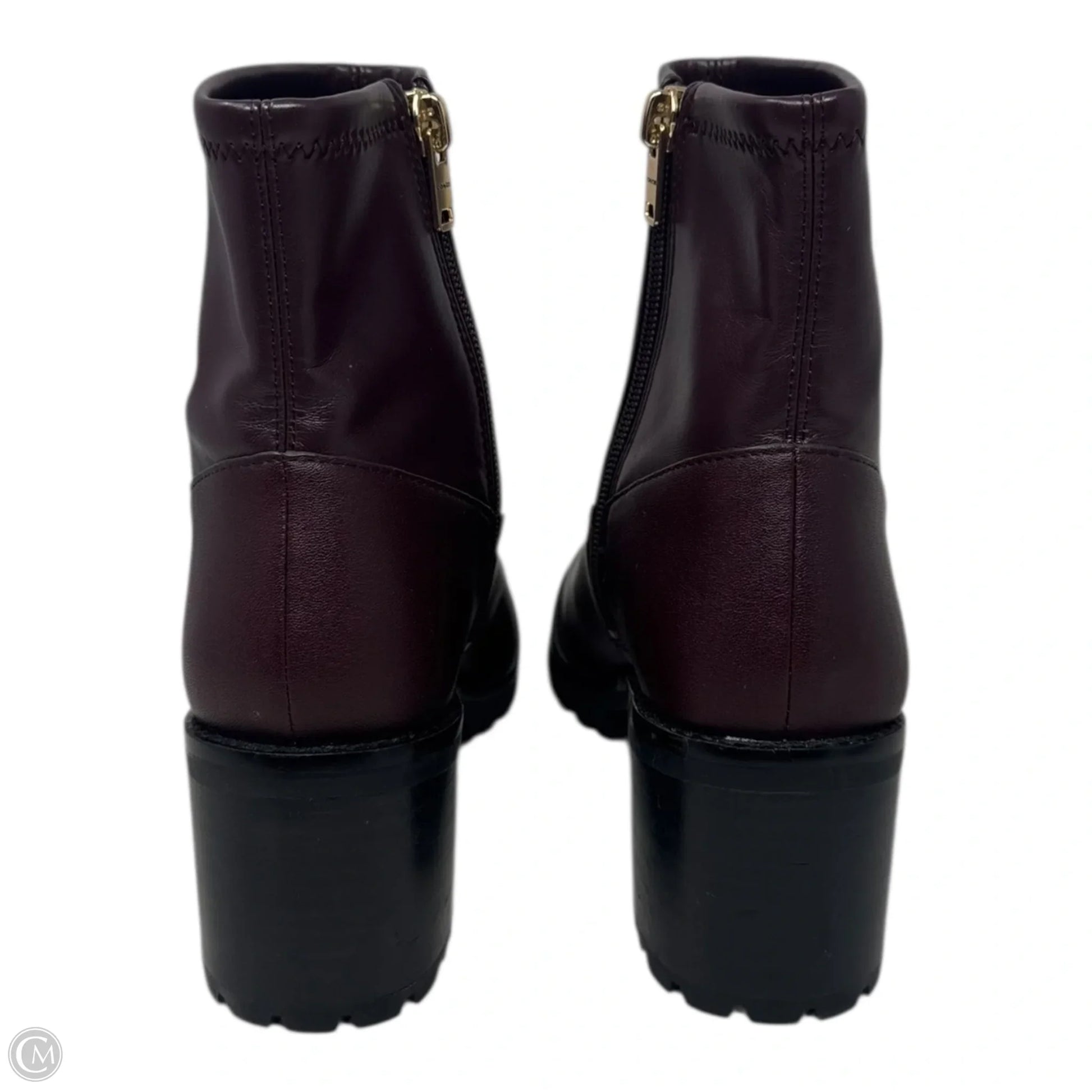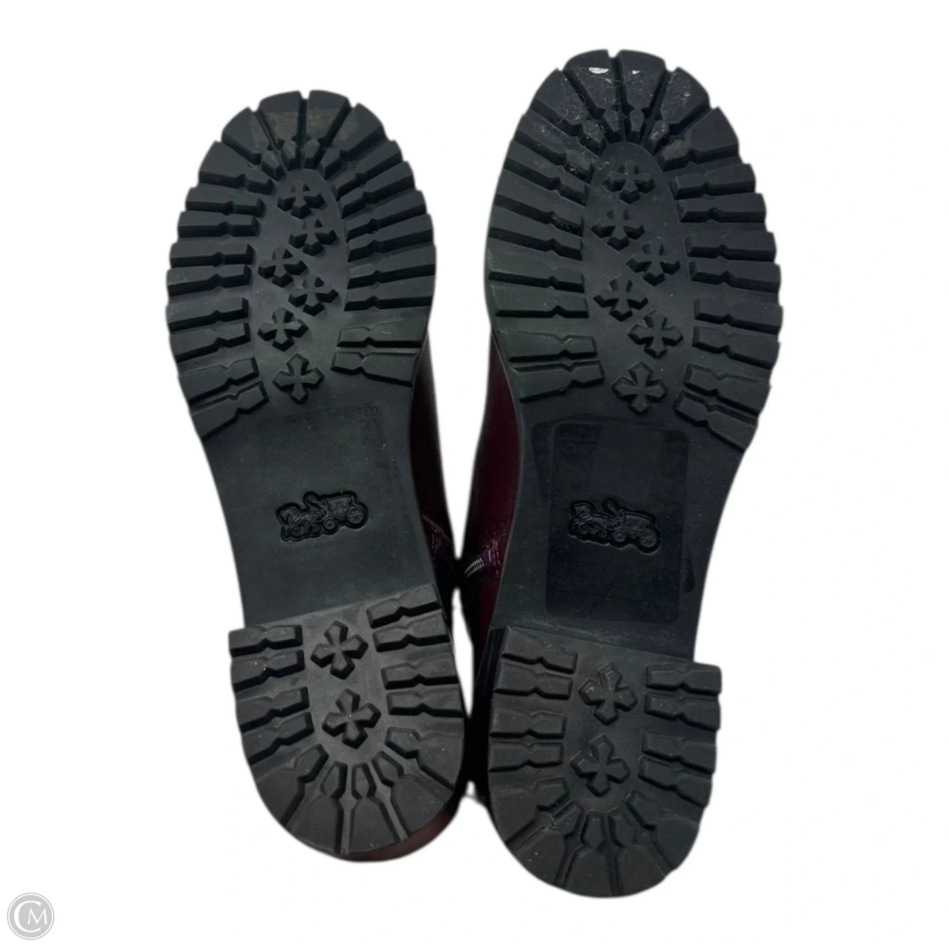 Joy Leather Boots Designer By Coach In Maroon, Size: 6.5