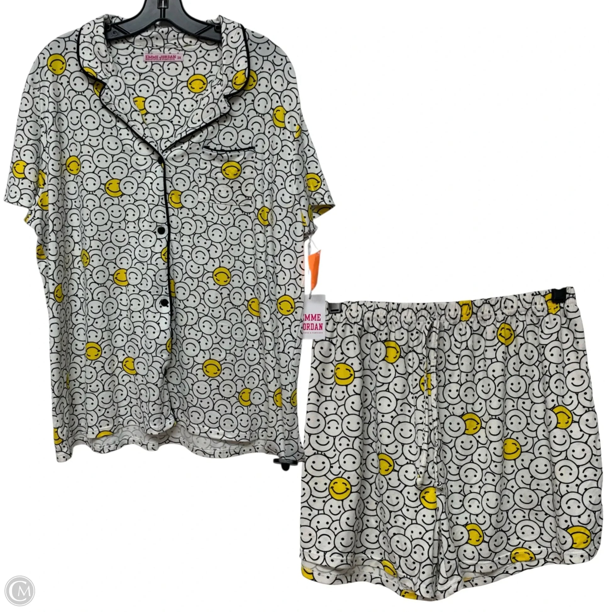 Experience ultimate comfort and style with Emme Jordan's Lounge Set Shorts in White & Yellow, Size 3x. Crafted with soft, breathable fabric for a perfect fit. Relax in luxury.