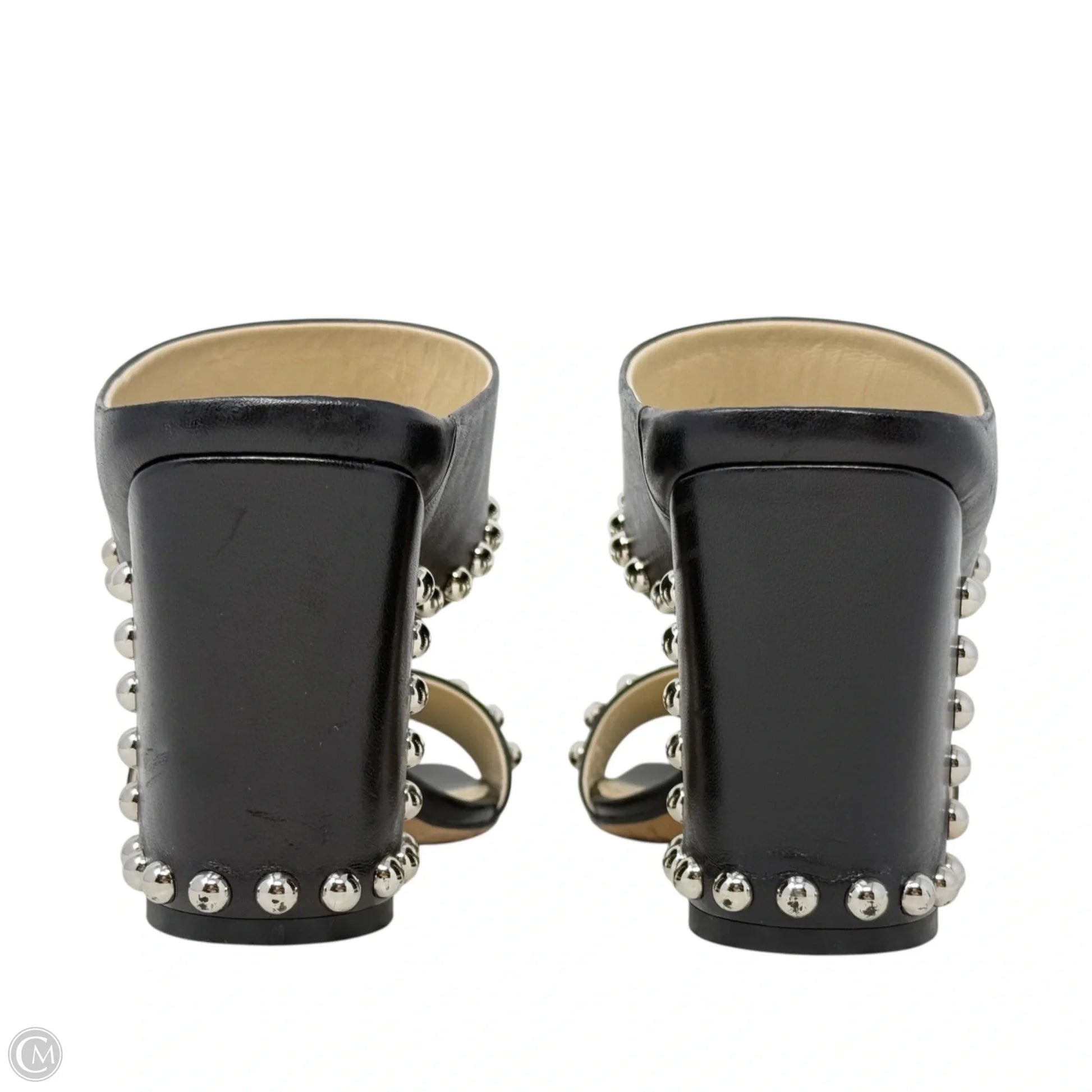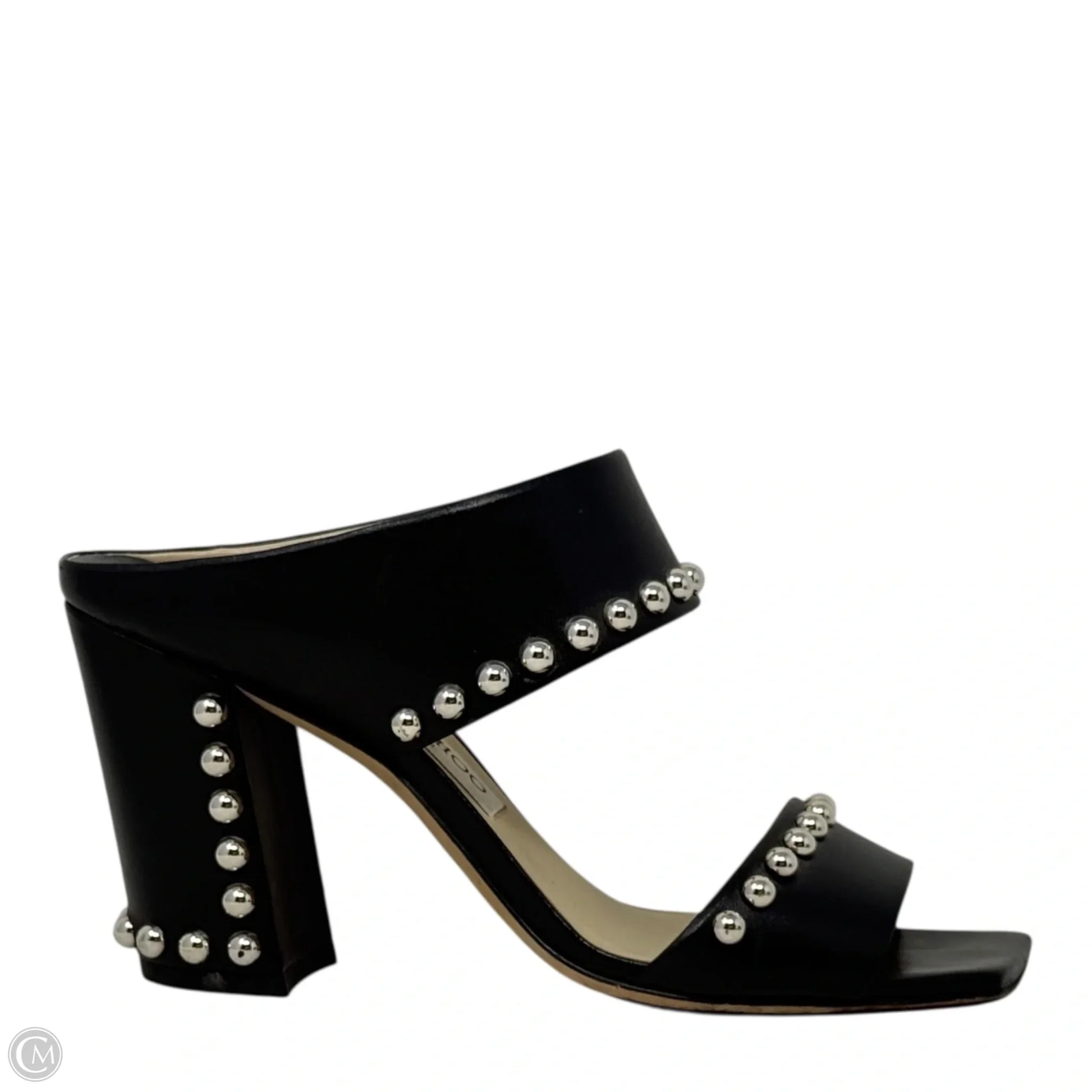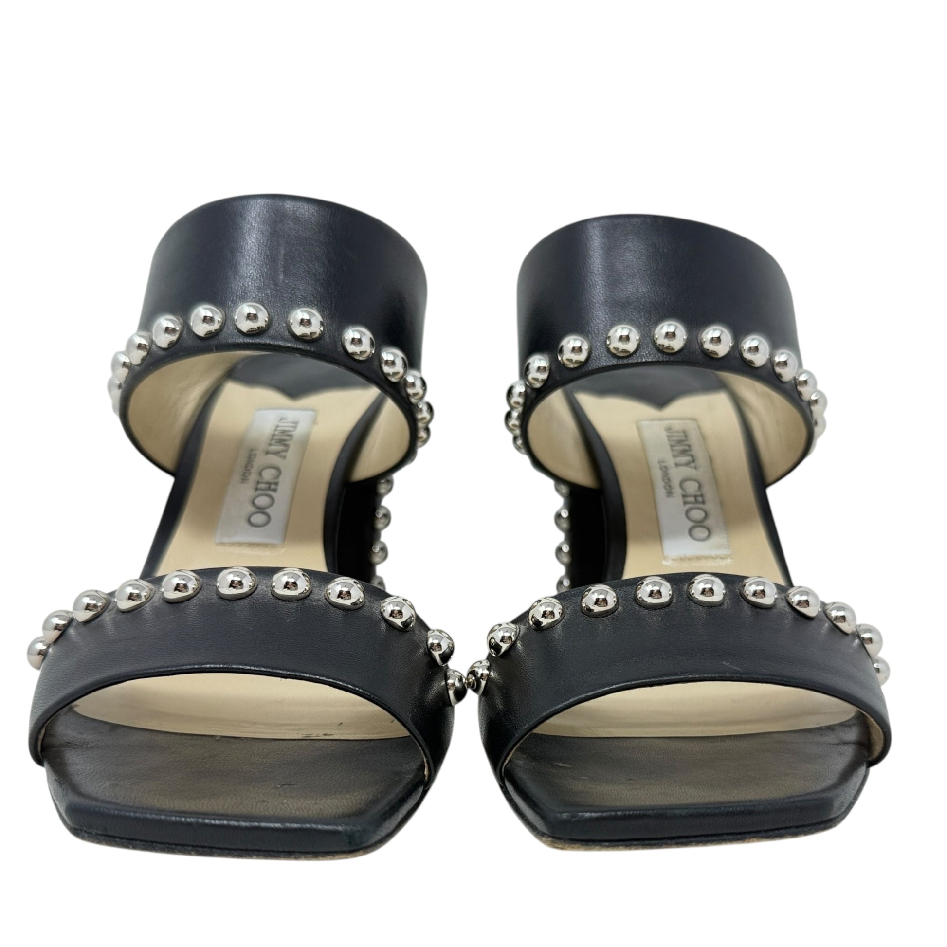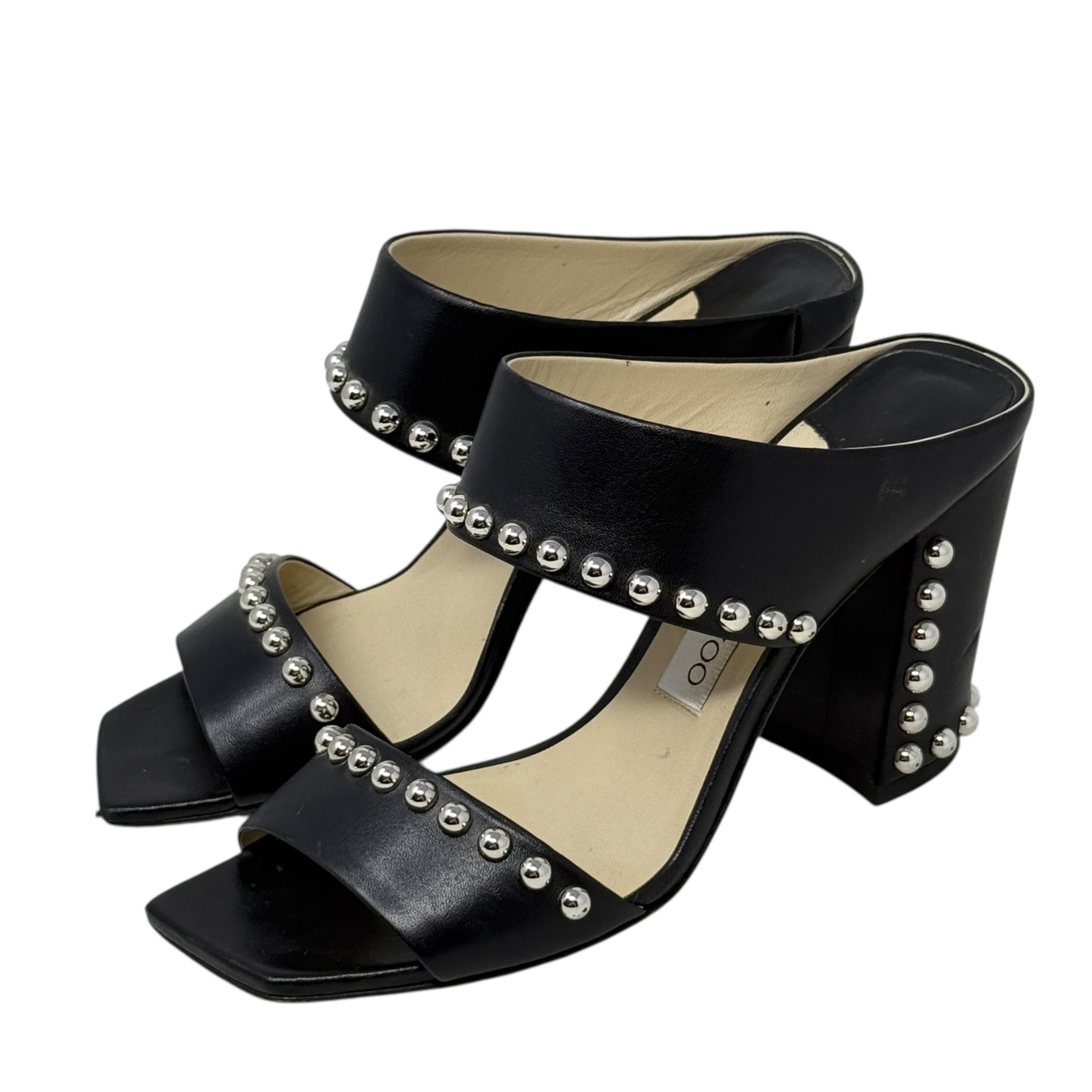 Matty Silver Studded Black Leather Mules Luxury Designer By Jimmy Choo In Black, Size: US 8/IT 38