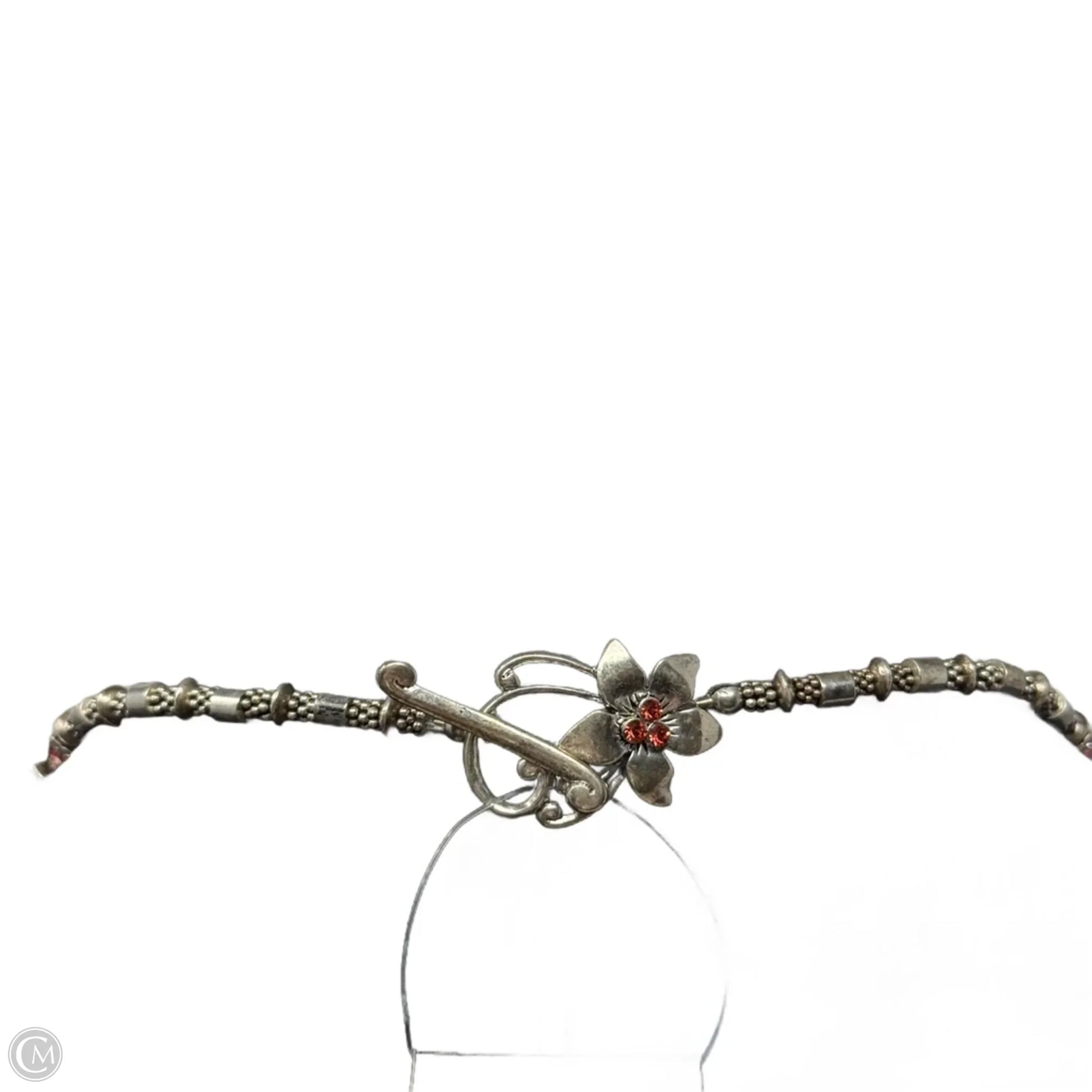 Silver & Pink Beaded Floral Toggle Necklace