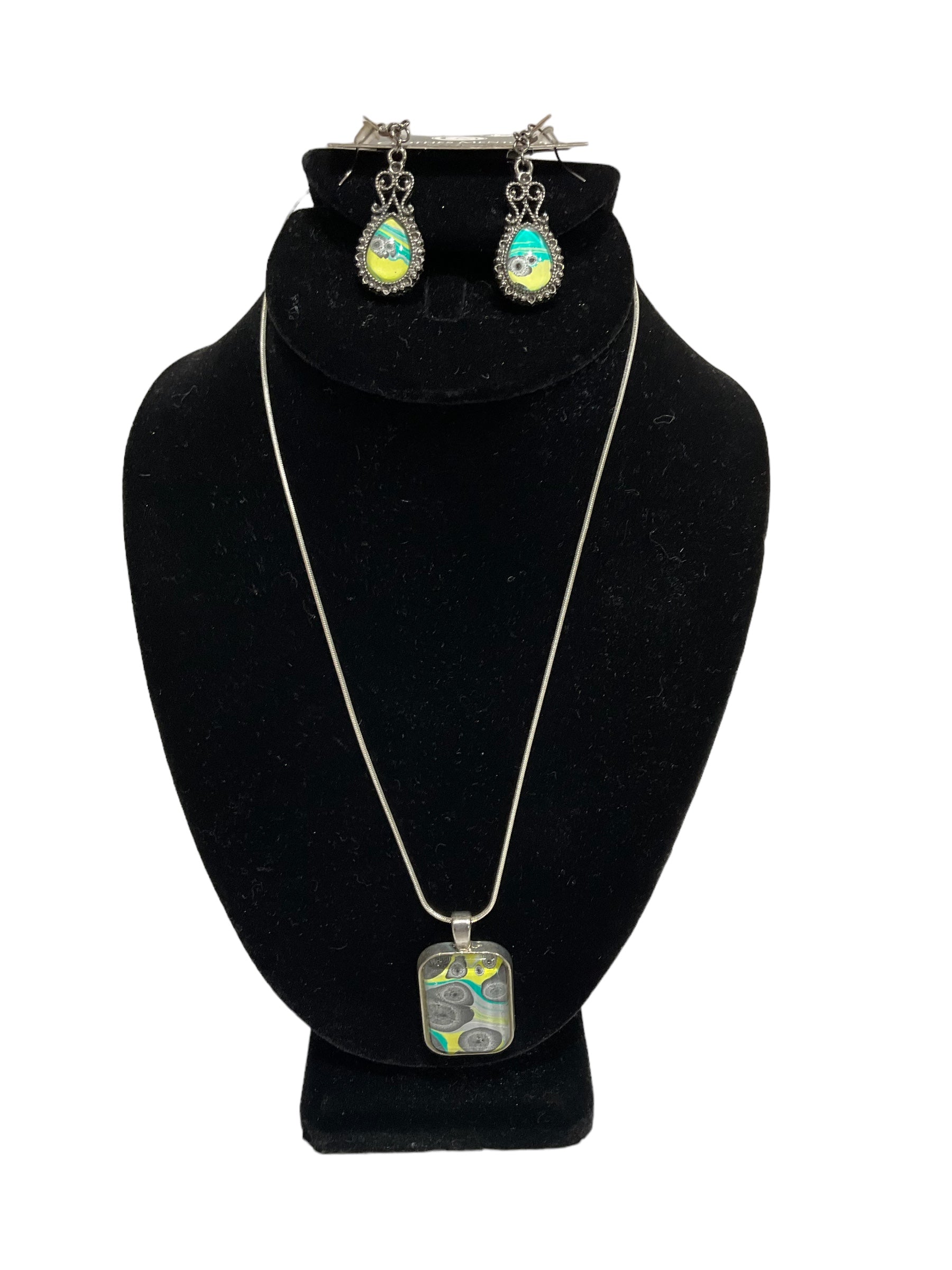 Necklace and earrings.