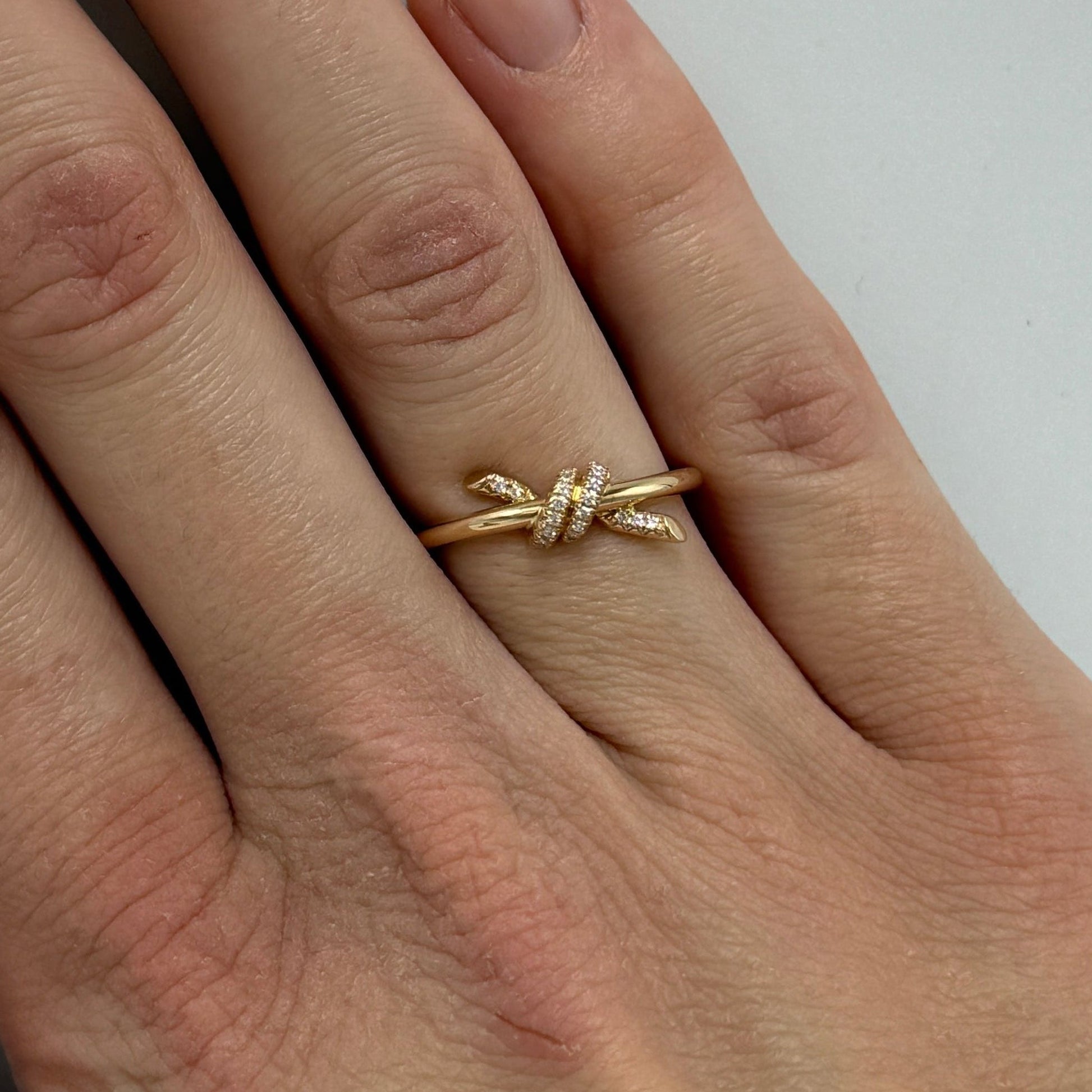 Tiffany & Company 18K Rose Gold Diamond Knot Luxury Ring, Size: 5.5