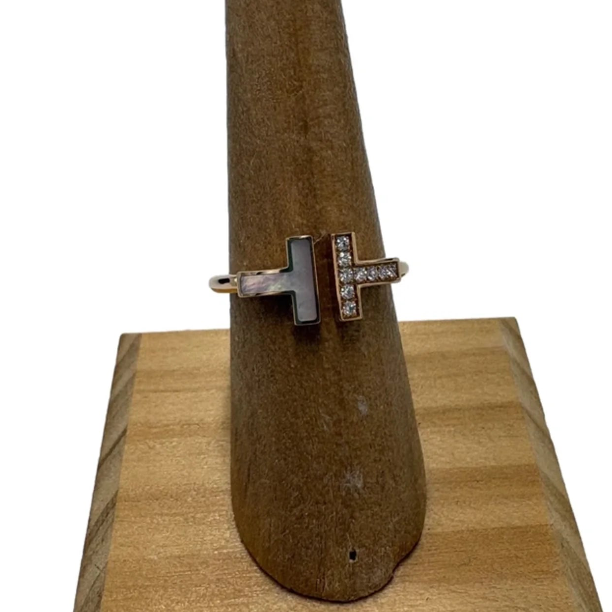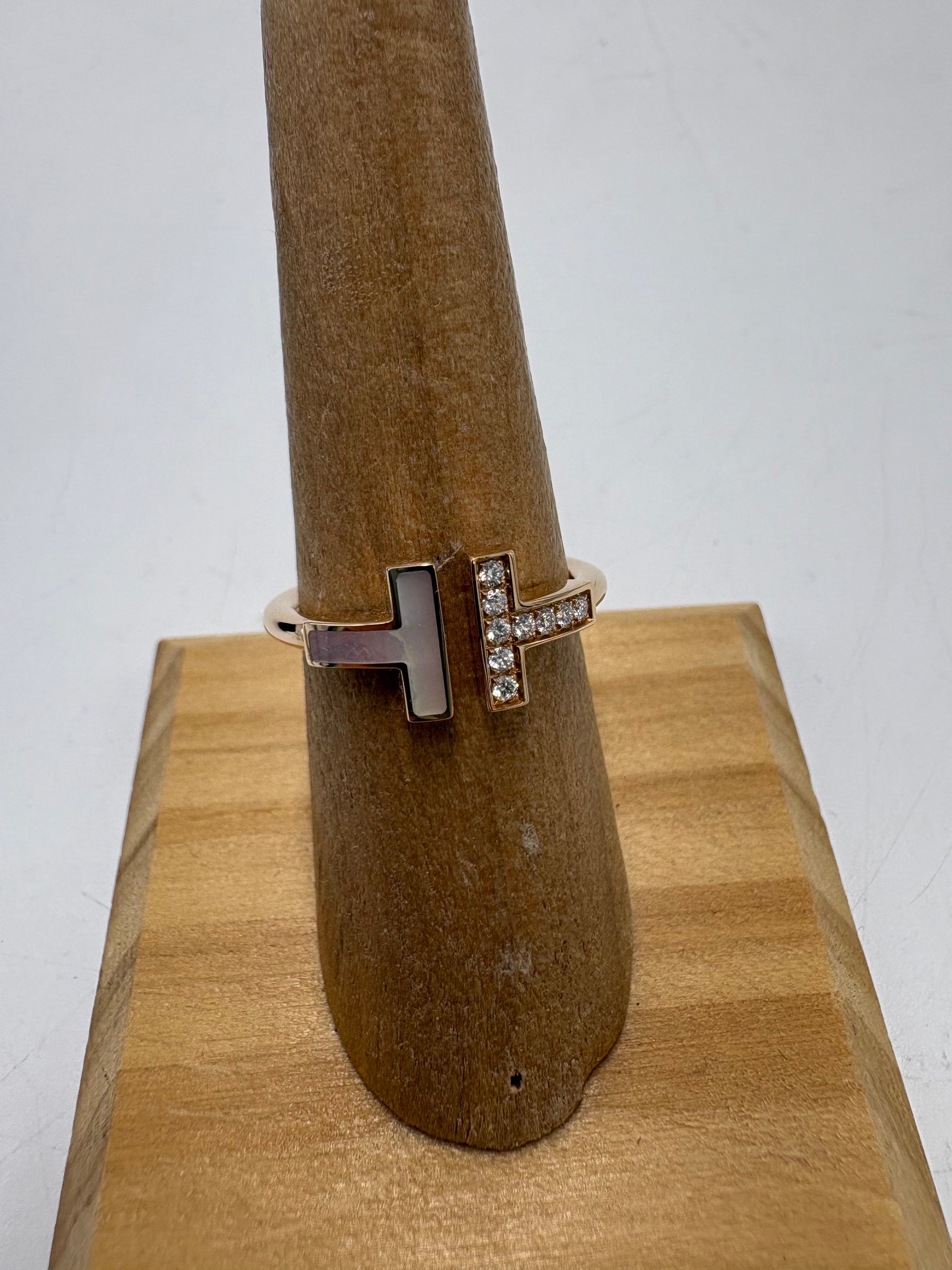 Other Info: T-WIRE RING W/ DIAMONDS AND MOTHER OF PEARL INLAY, APPROX. 0.07 CARAT WEIGHT.
