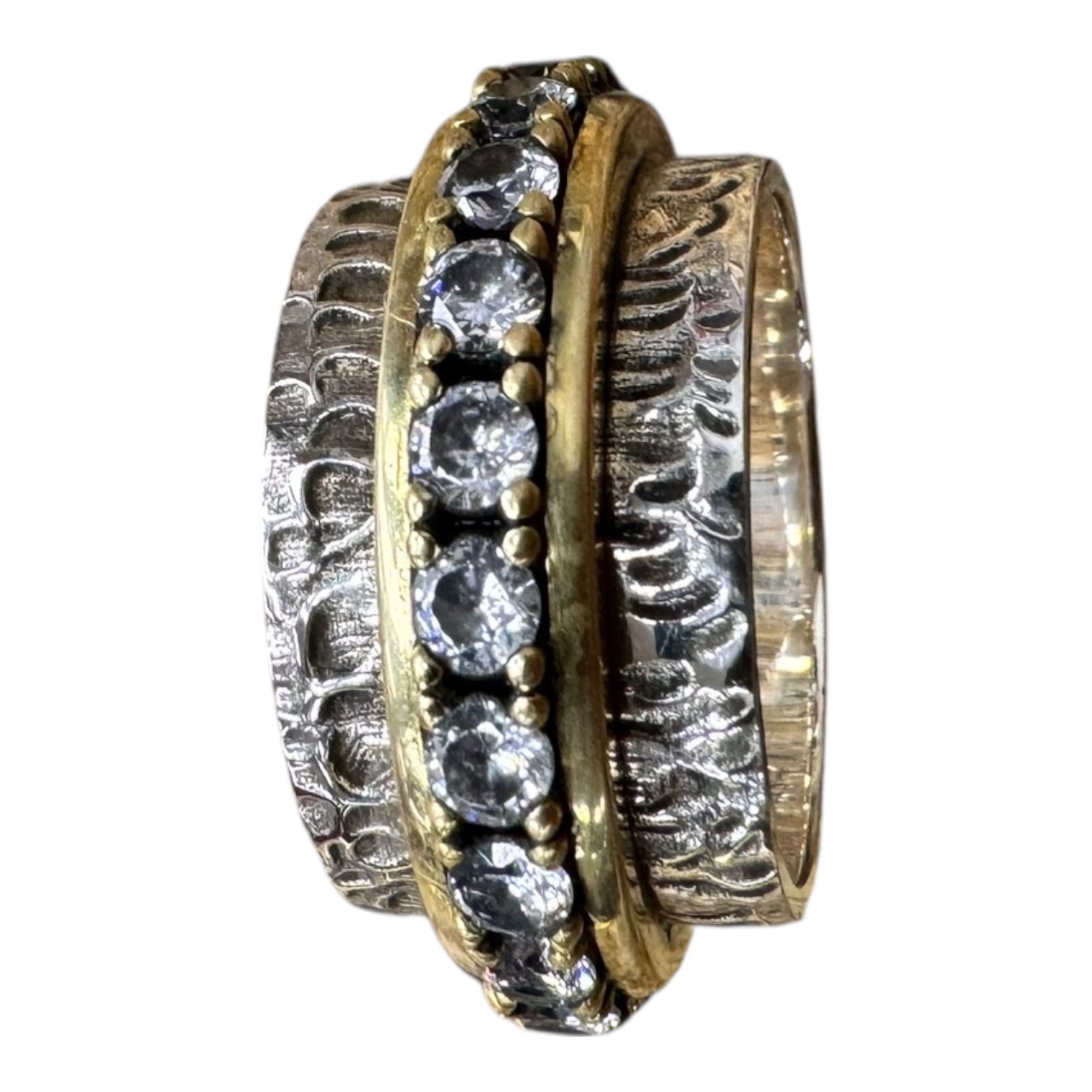 Make a bold statement with the CMC Silver Ring in Size 8. Crafted for impact, this statement piece exudes confidence and style. Embrace its texture and fit for a touch of elegance.