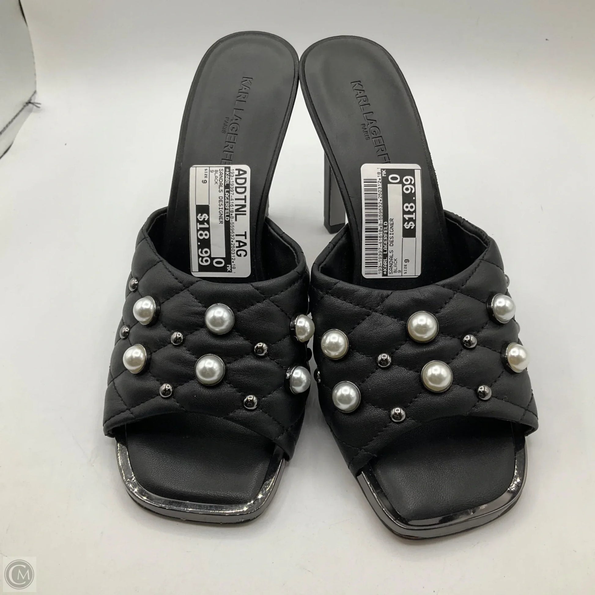 Sandals Designer By Karl Lagerfeld In Black, Size: 9