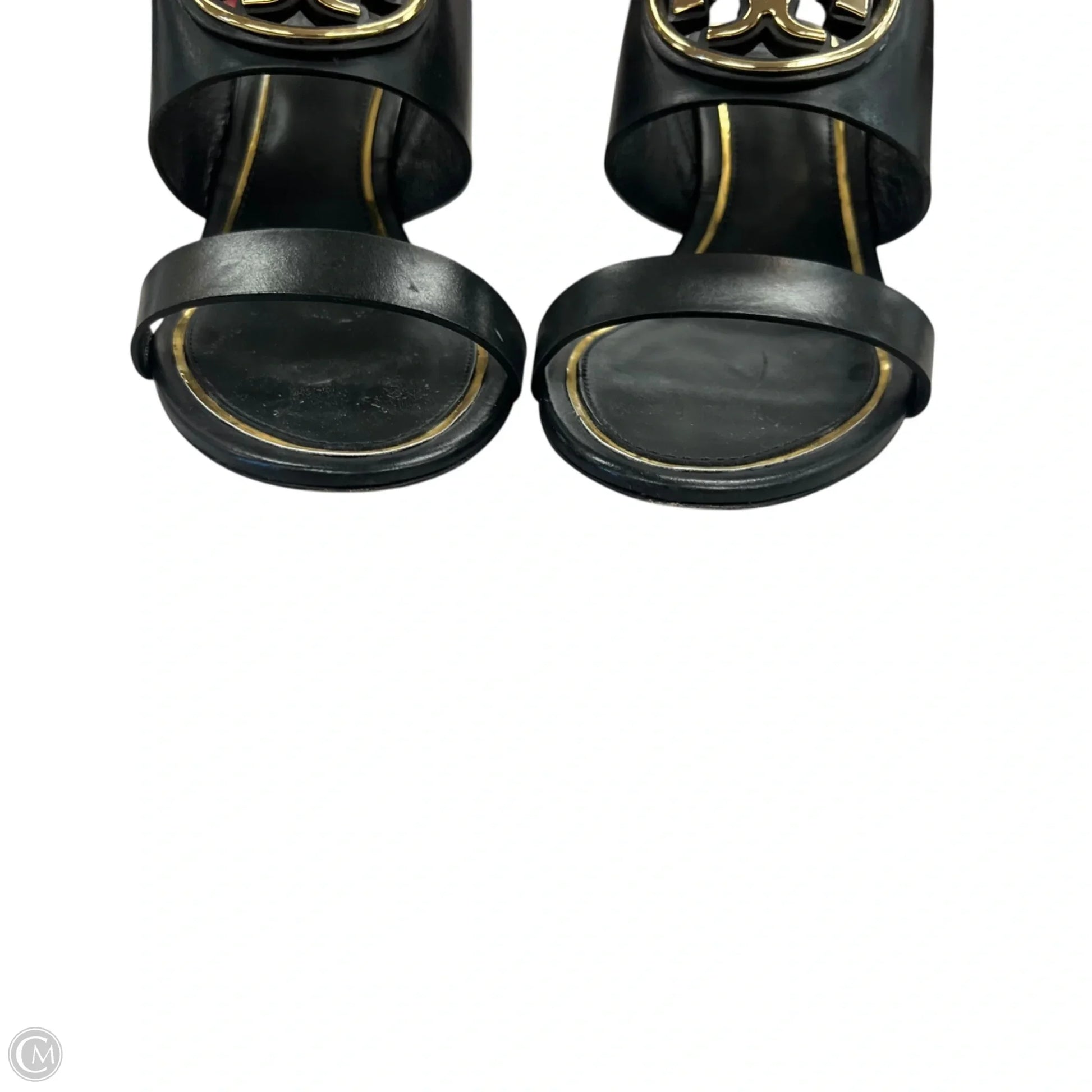 Sandals Designer By Tory Burch In Black & Gold, Size: 6