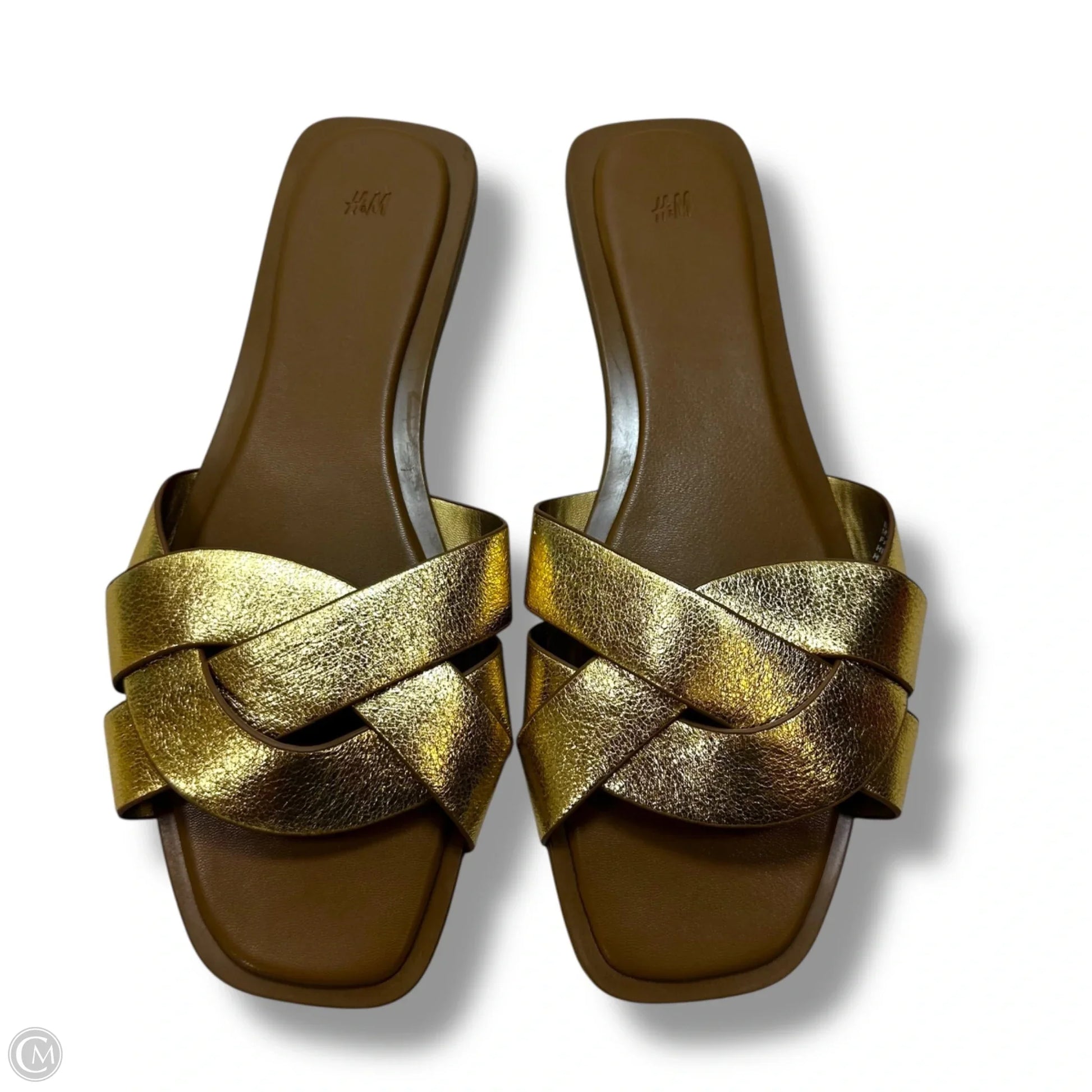 Golden H&M sandals in size 9: chic comfort for summer.