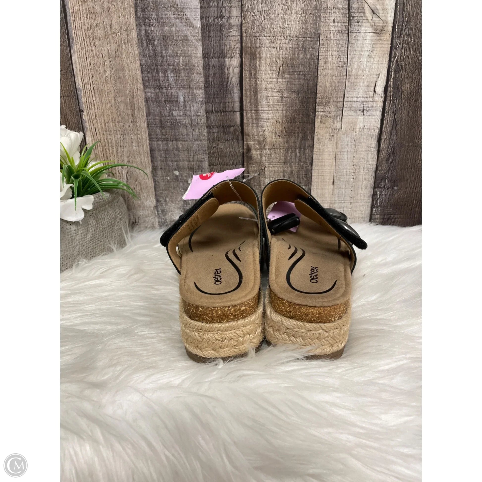 Sandals Heels Block By Aetrex In Black, Size: 6.5
