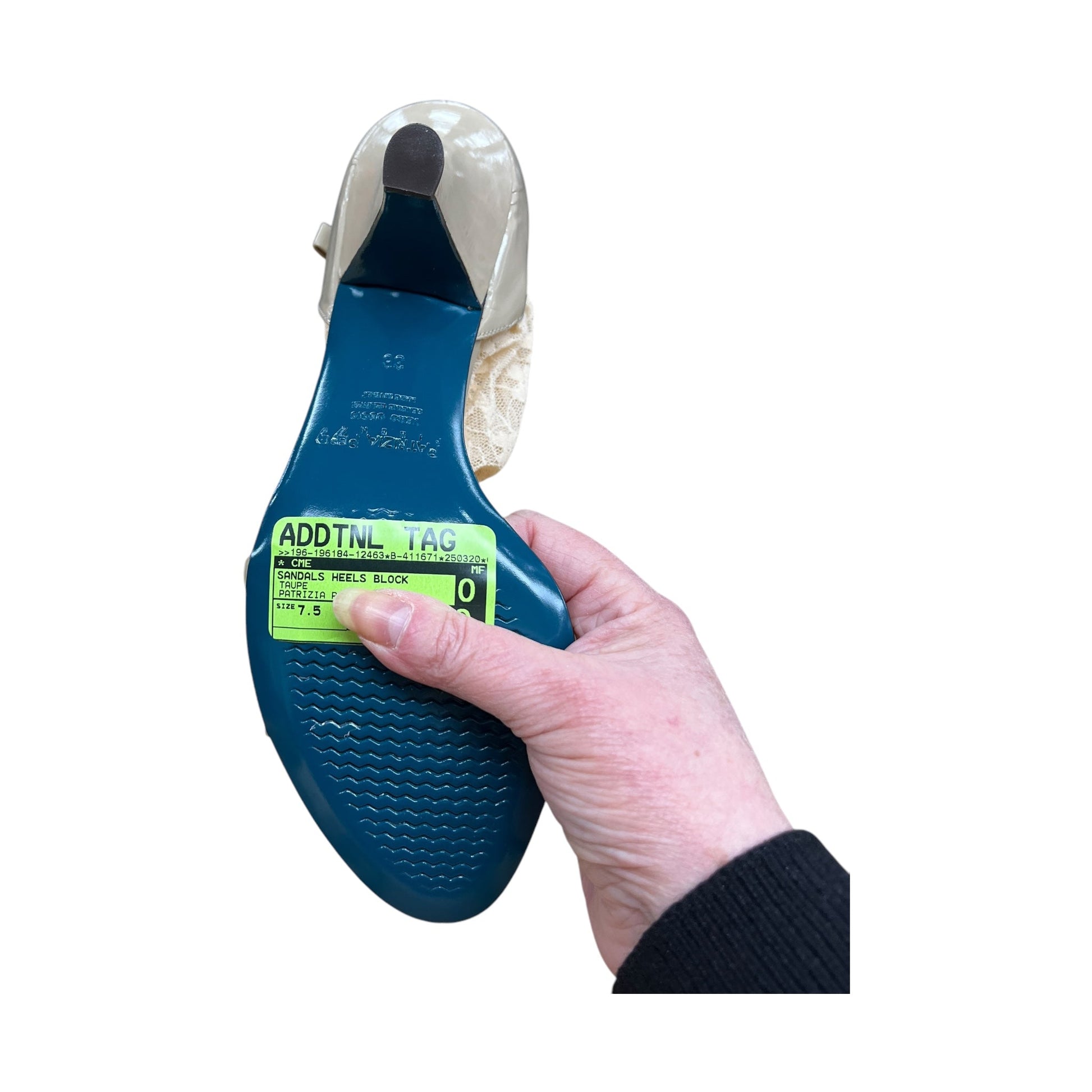 Step into effortless elegance with these Block Heel Sandals by Cme in Taupe, Size 7.5. Chic comfort for every occasion.