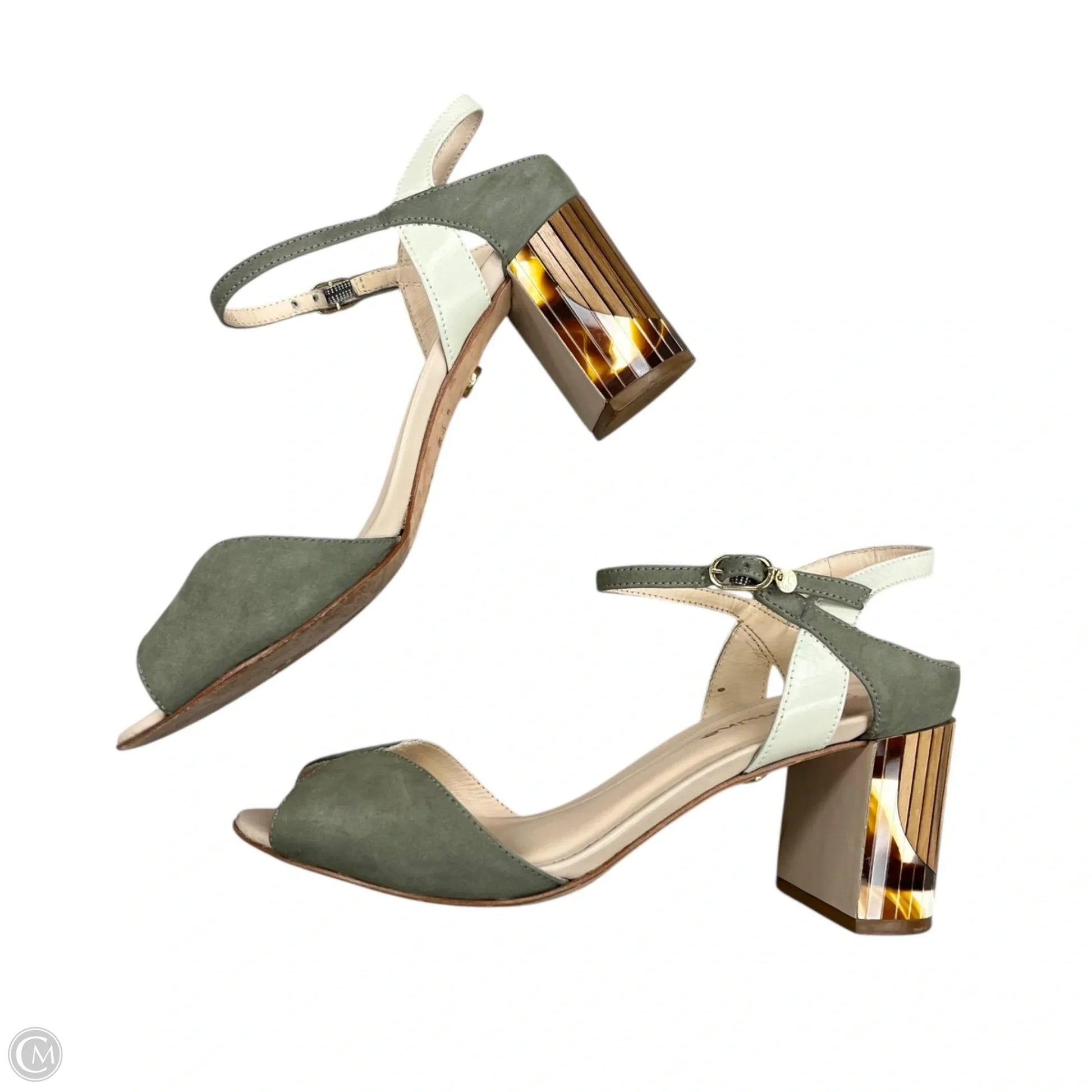 Sandals Heels Block By Guilhermina In Grey & Tan, Size: 5