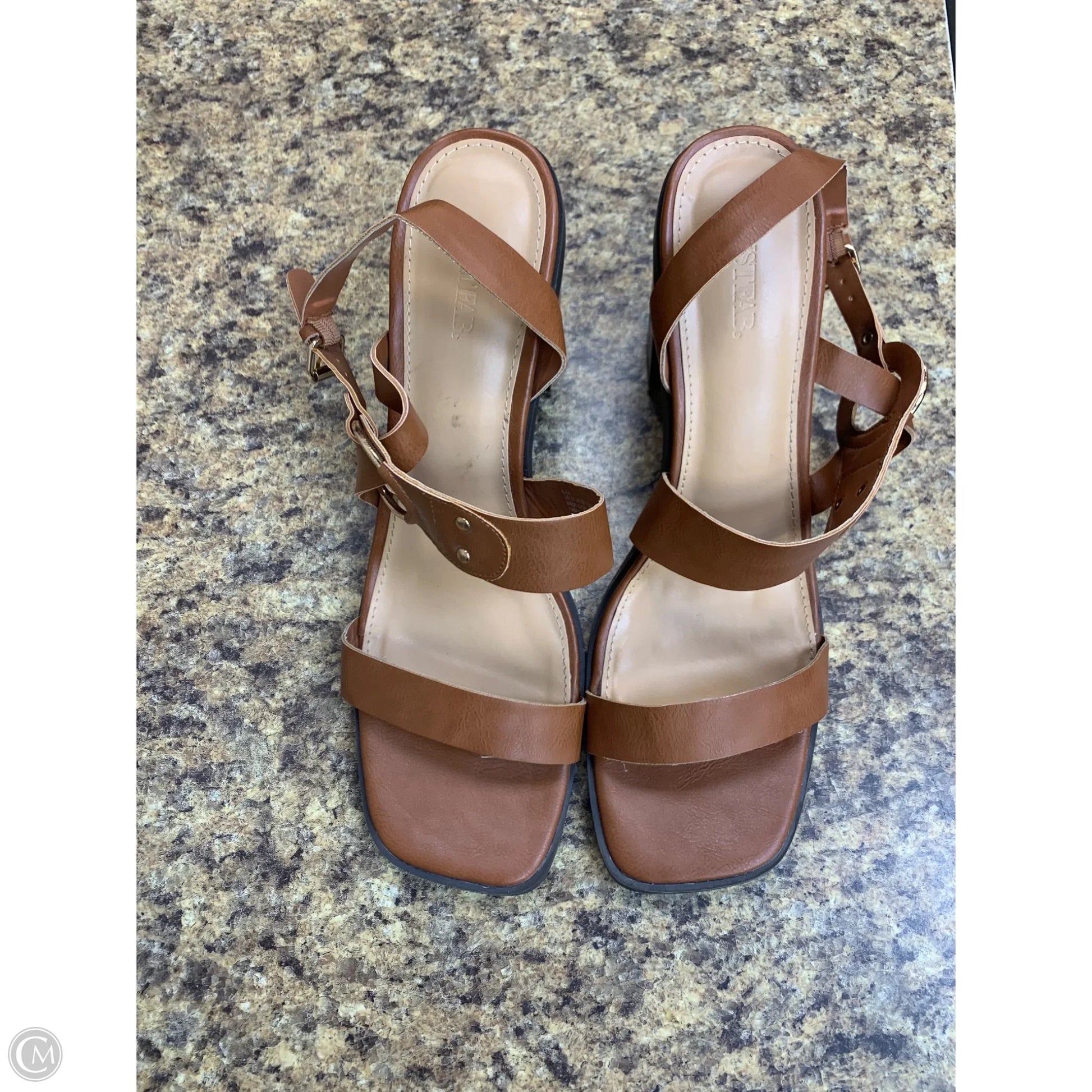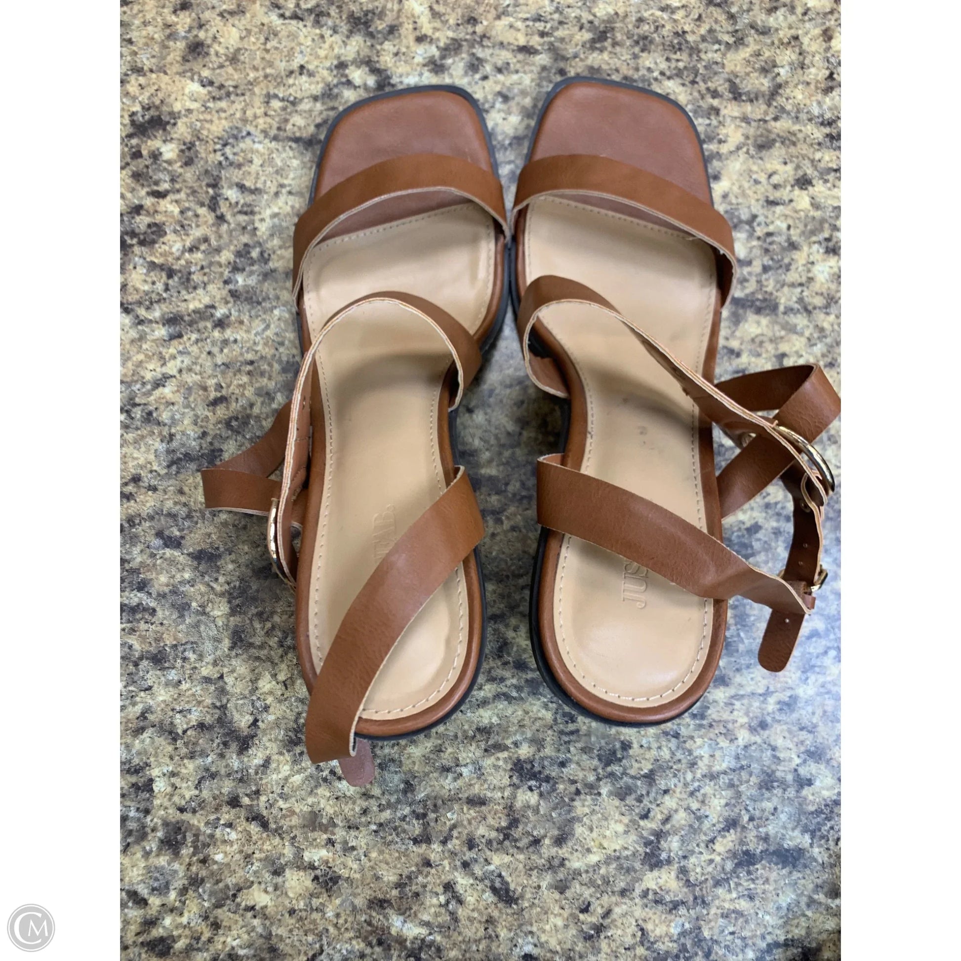 Sandals Heels Block By Just Fab In Tan, Size: 12