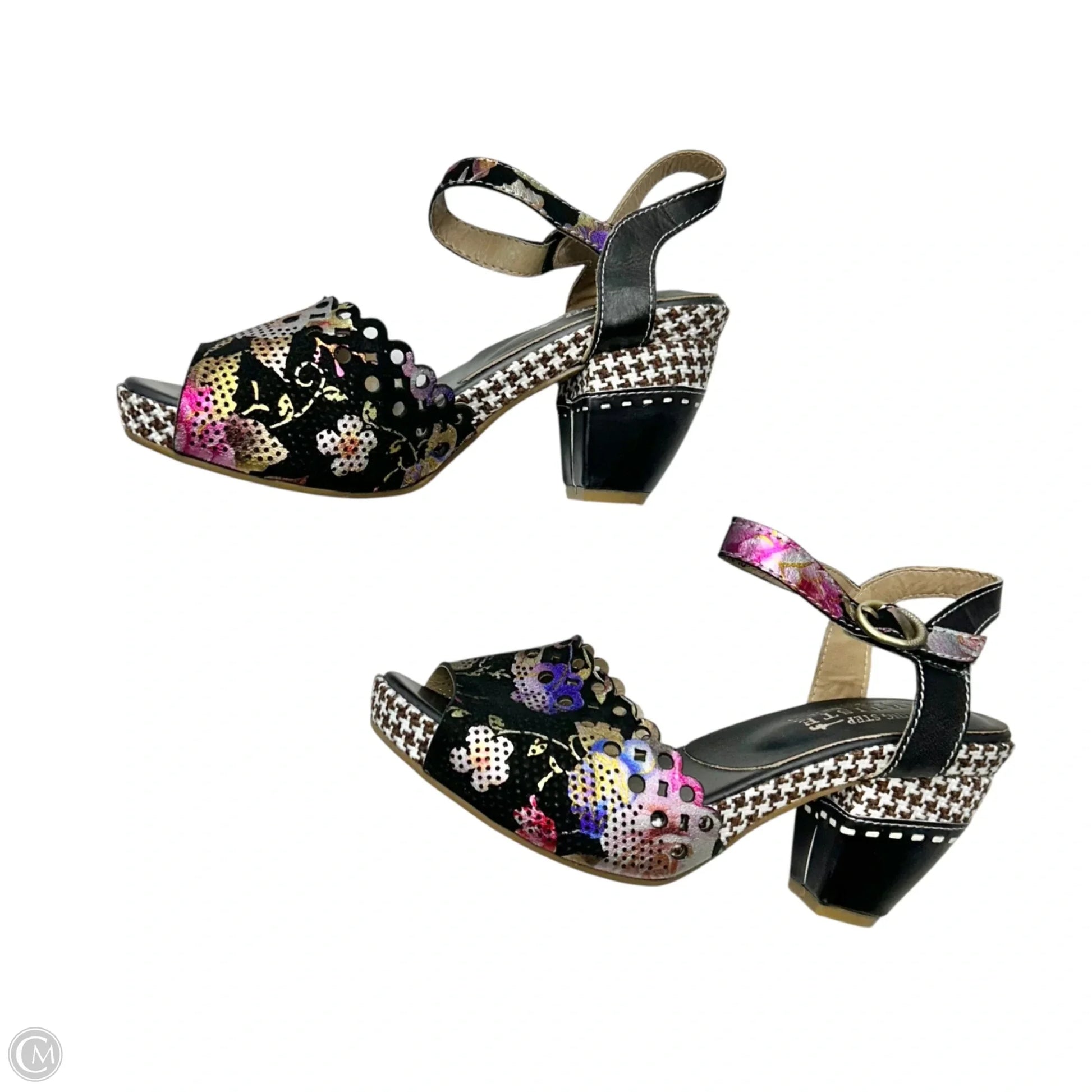 Sandals Heels Block By Spring Step In Black Floral, Size: 6.5