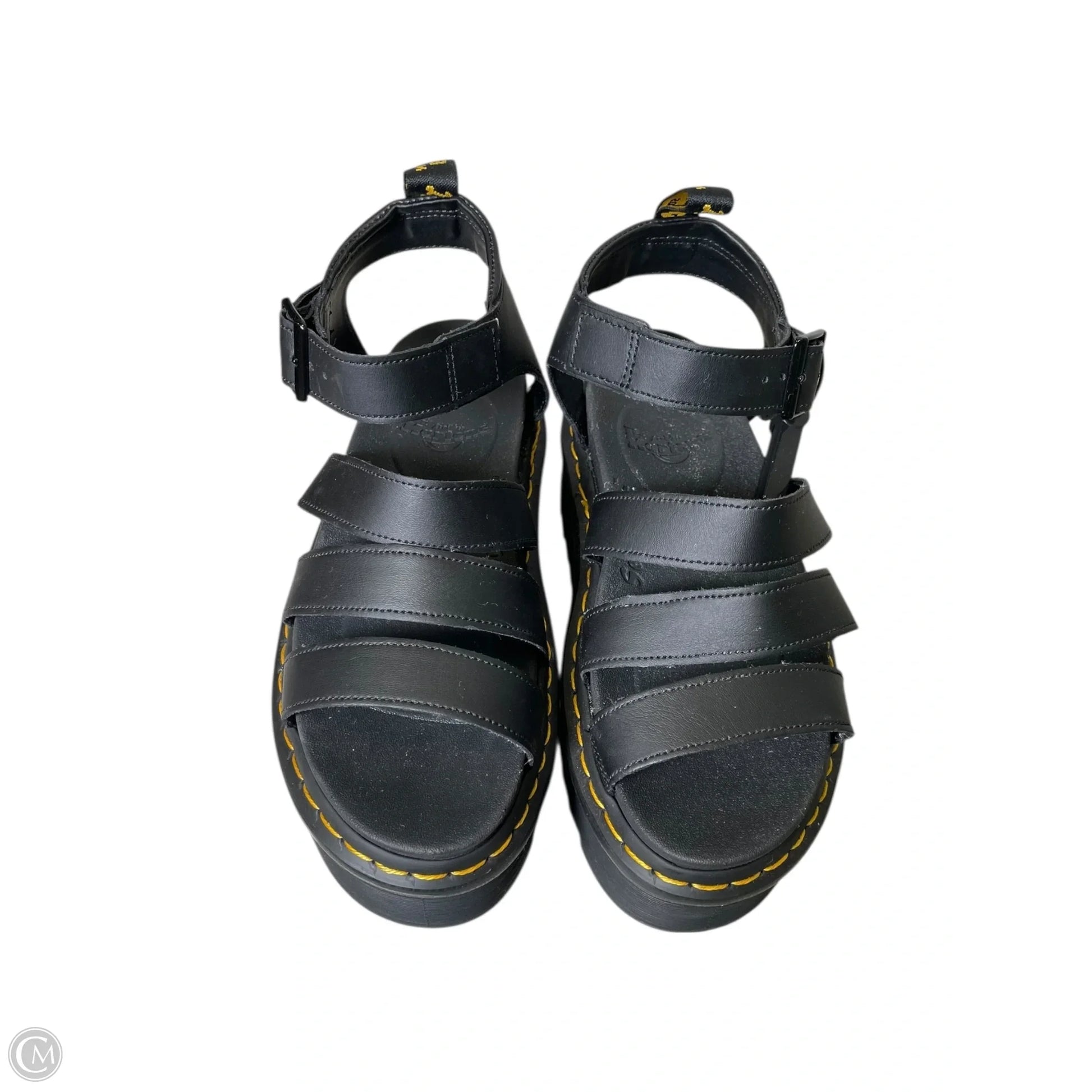 Step up your shoe game with these black platform sandals by Dr. Martens in size 8.