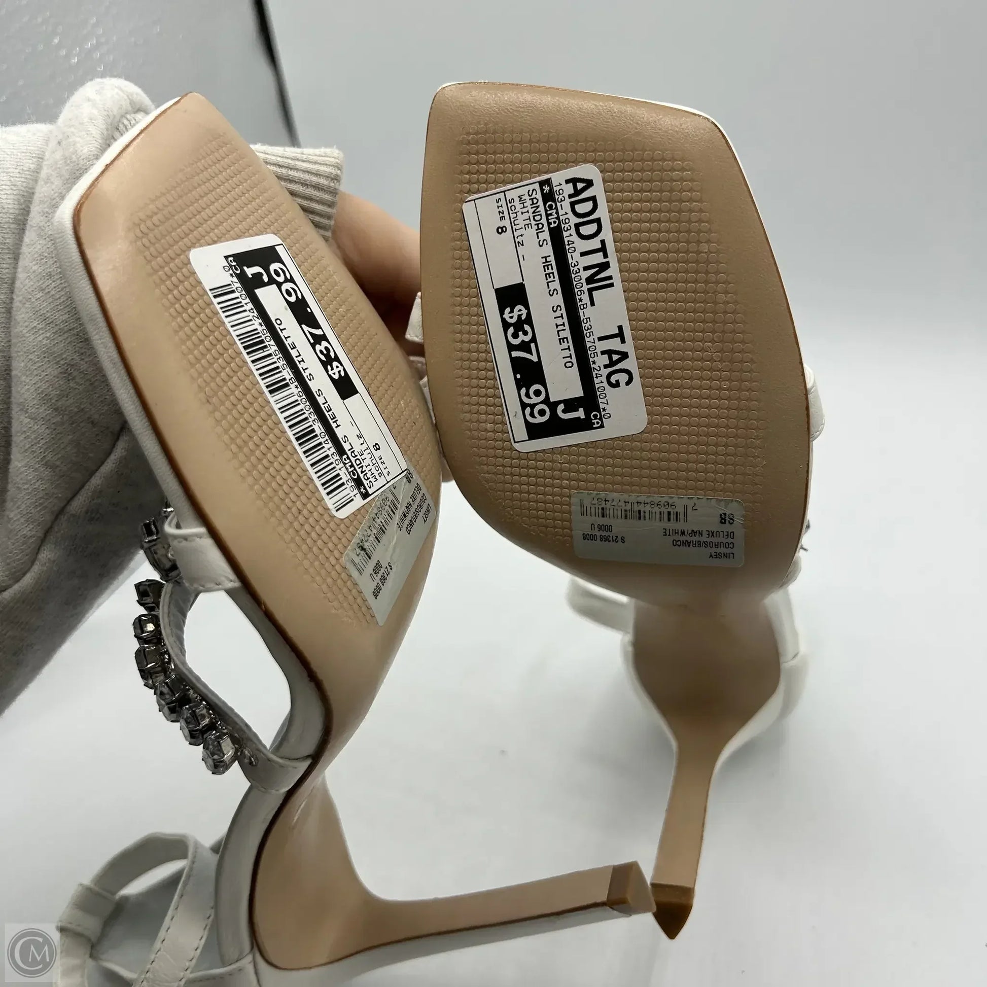 Stride confidently in CMA's White Stiletto Sandals, Size 8. Unleash your inner power with sleek design and impeccable style. Own your look!