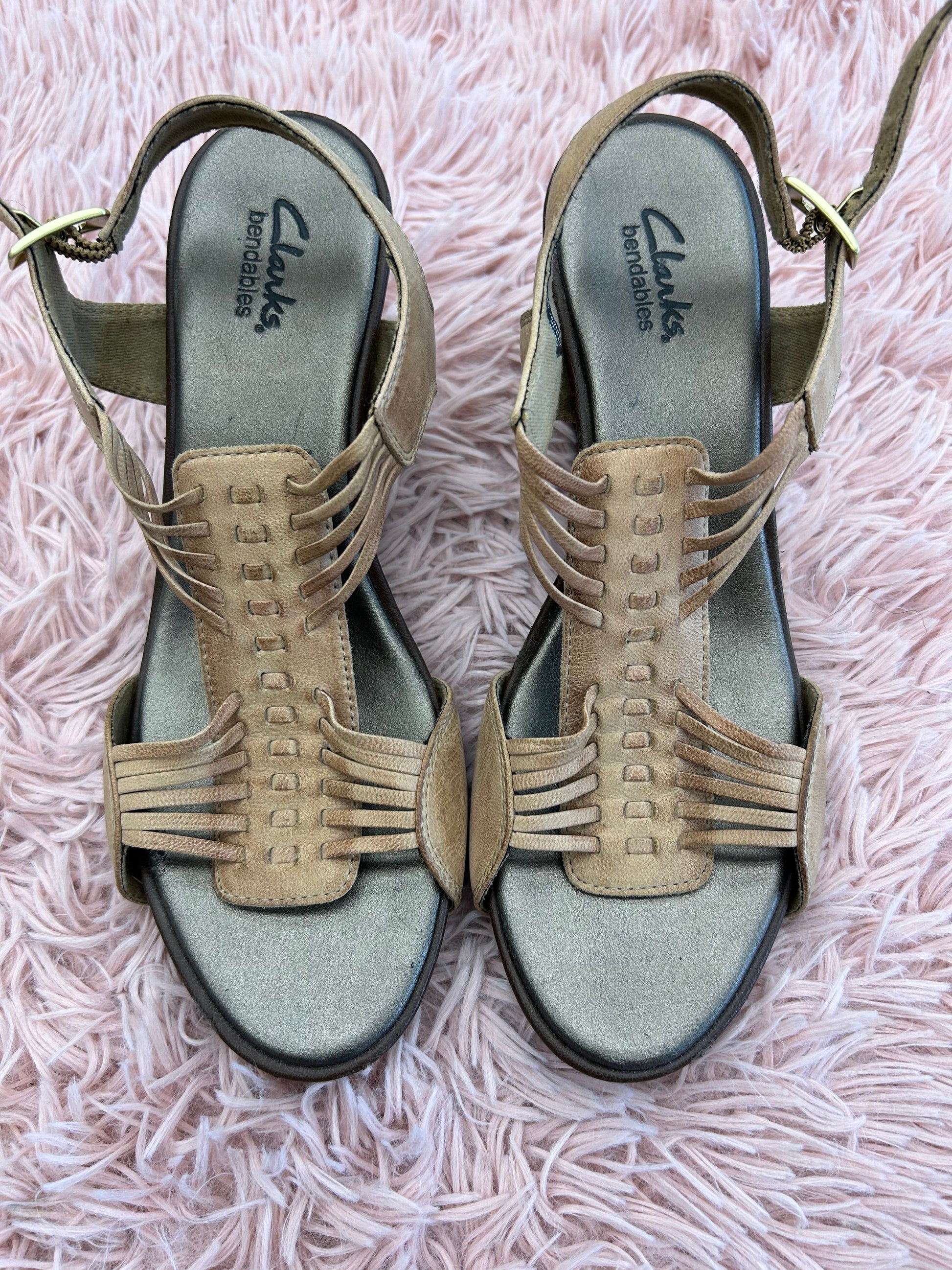 Sandals Heels Wedge By Clarks In Brown, Size: 8
