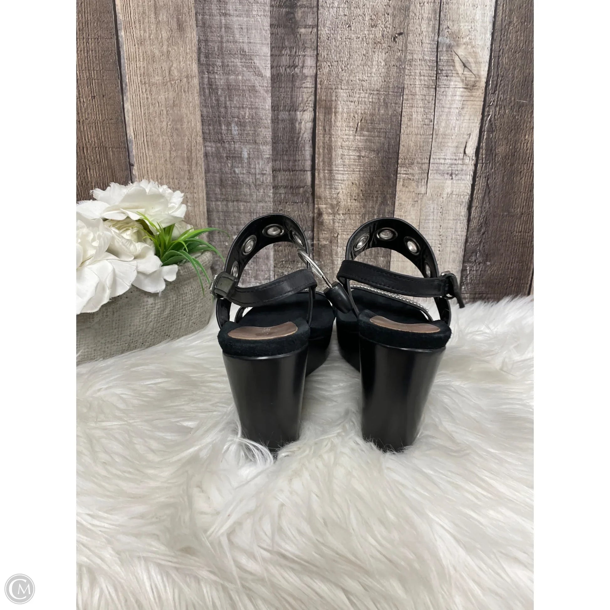 Sandals Heels Wedge By Donald Pliner In Black, Size: 6.5