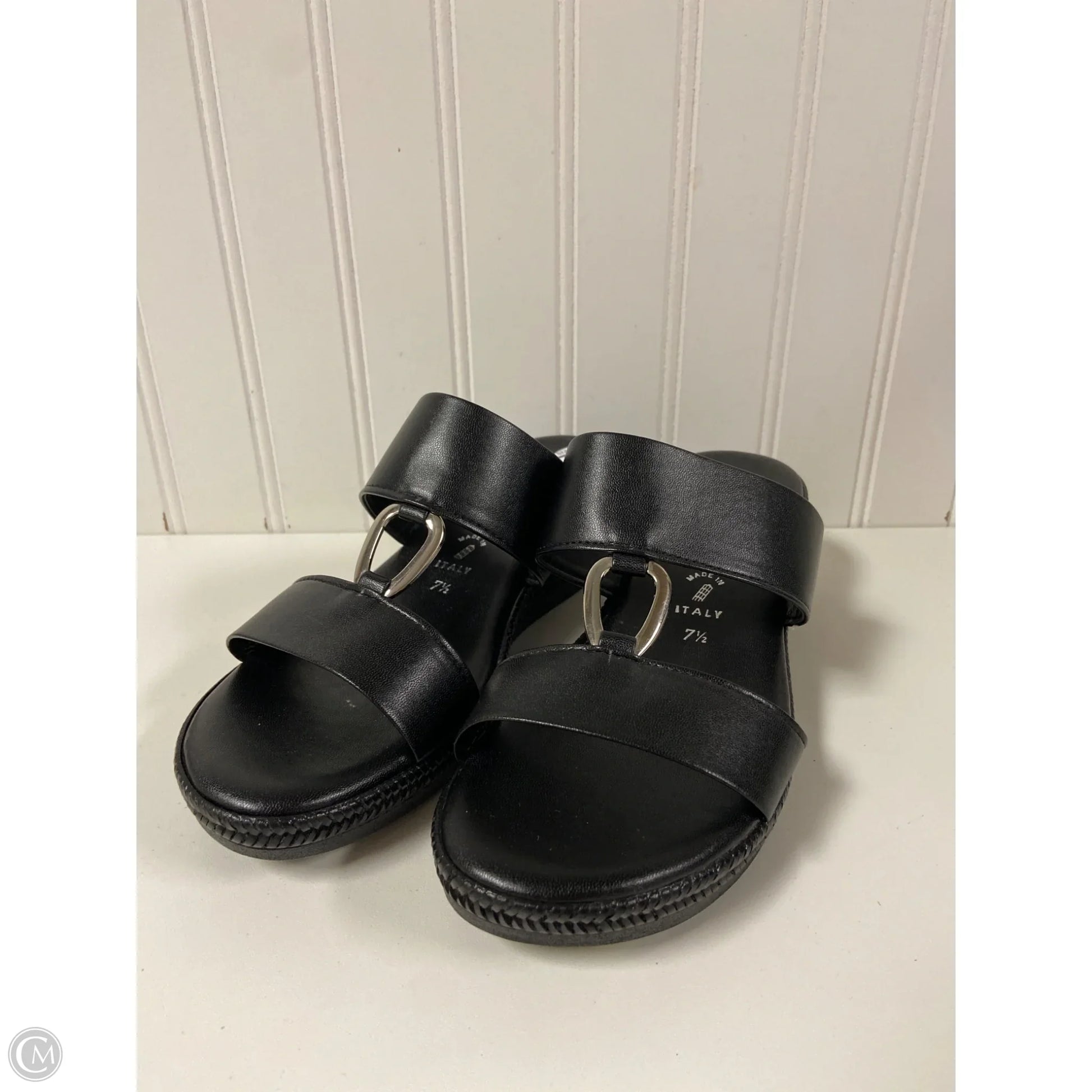 Sandals Heels Wedge By Italian Shoemakers In Black, Size: 7.5