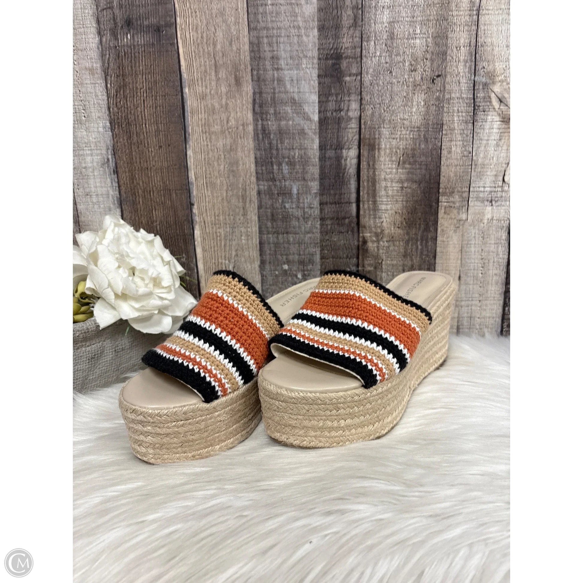 Sandals Heels Wedge By Marc Fisher In Brown & Cream, Size: 8