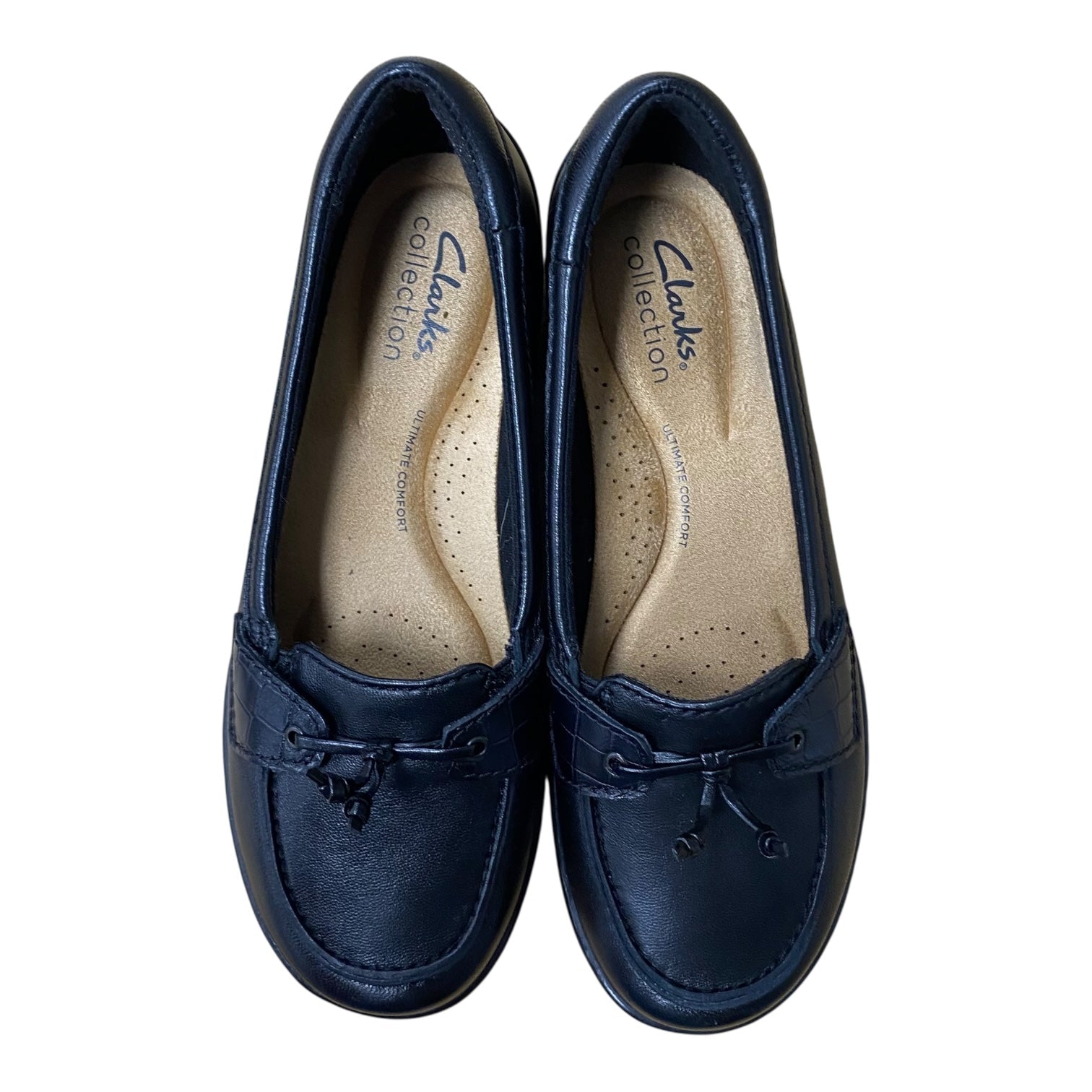 Effortlessly chic Clarks black flats in size 5.5 - a perfect blend of style and comfort.
