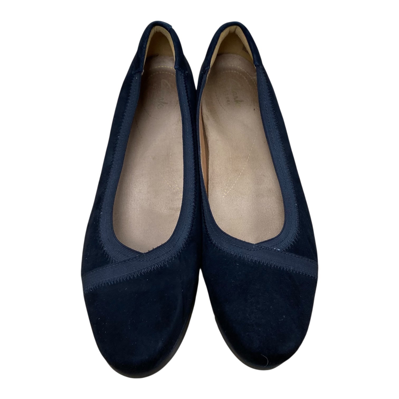 Step out in style with these Clarks black flats in size 9.5. Crafted for comfort with a touch of chic, these shoes are a must-have for on-the-go trendsetters. Embrace your unique flair with every step!