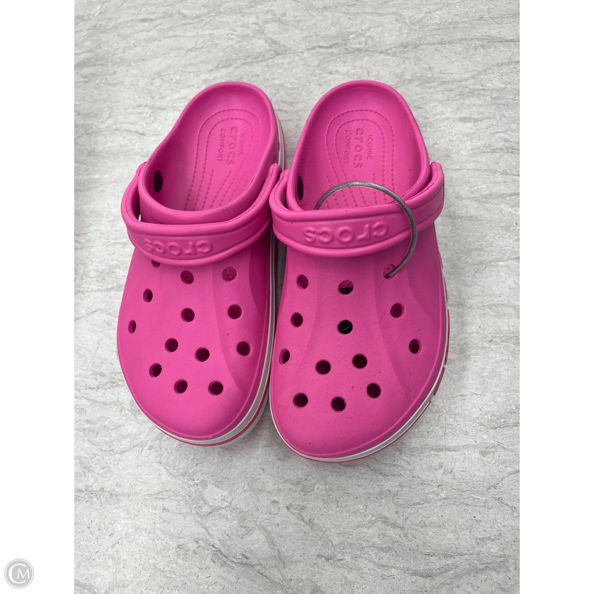 Shoes Flats By Crocs In Pink & White, Size: 10