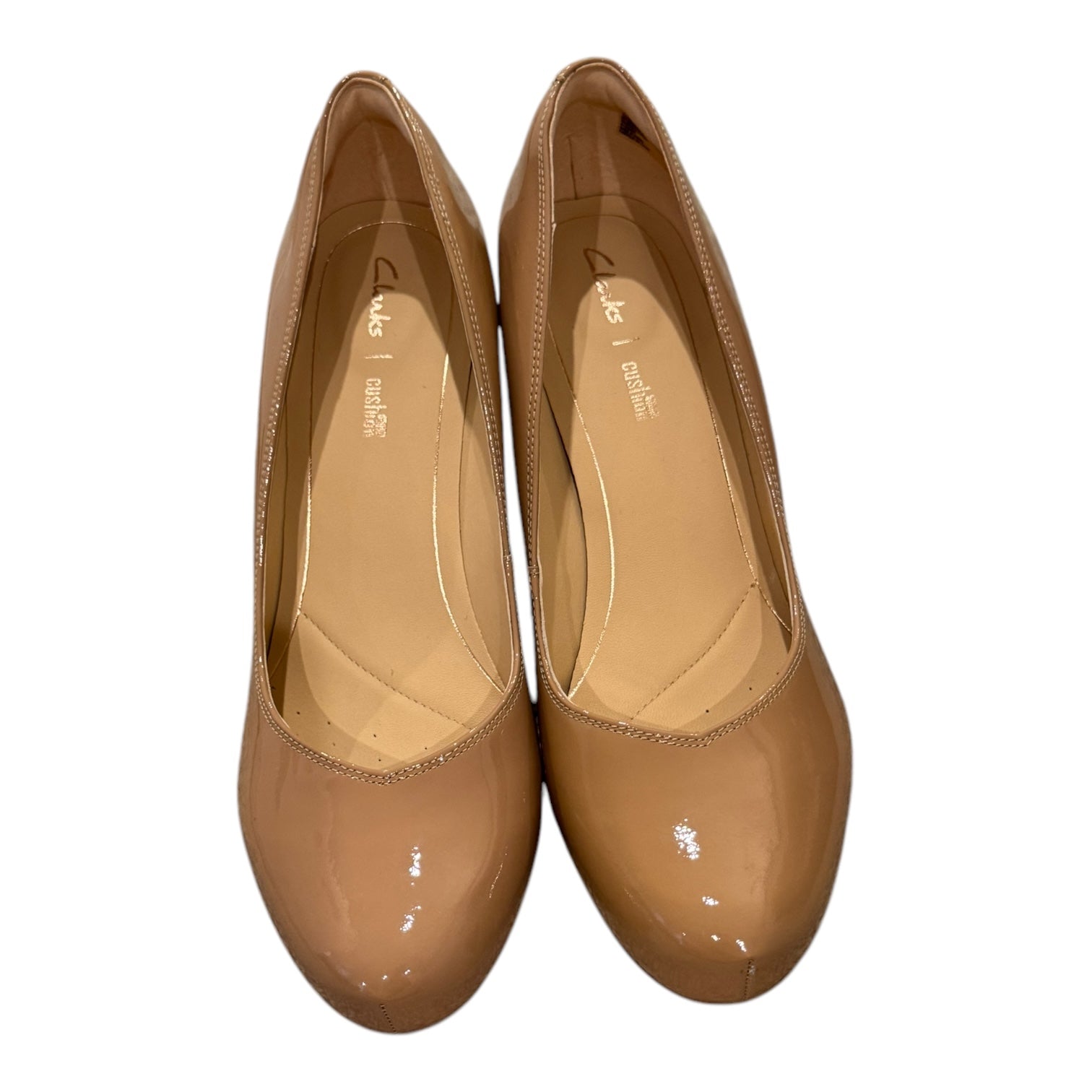Step up your shoe game with these peachy keen Clarks block heels in size 10. Comfort and style in one!