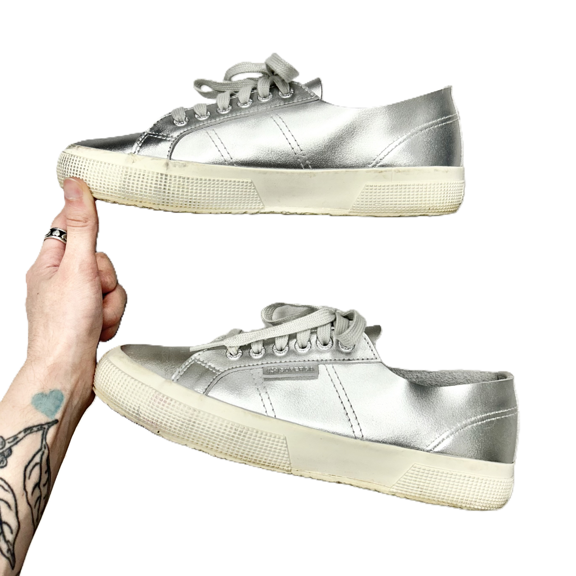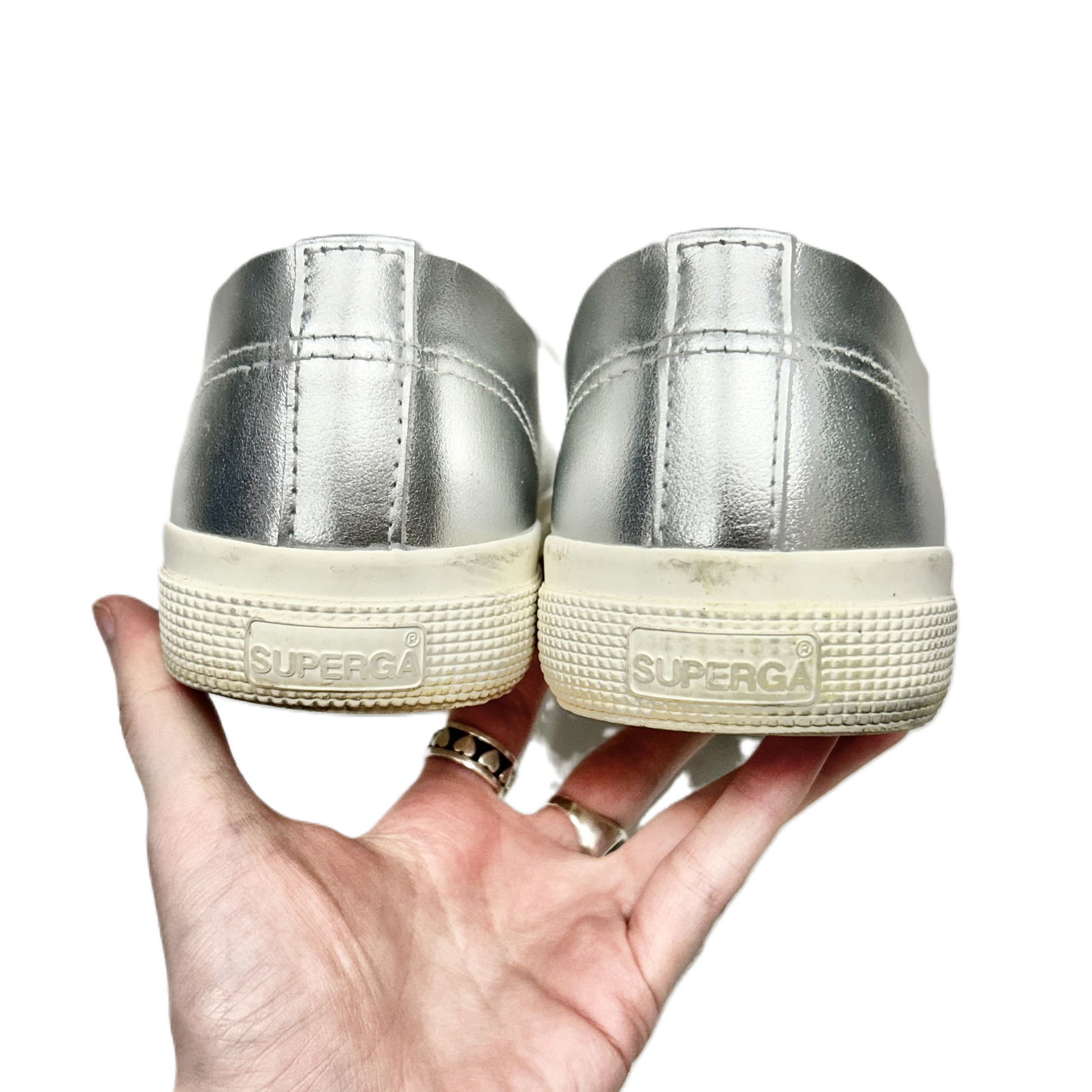Shoes Sneakers By Superga In Silver, Size: 8