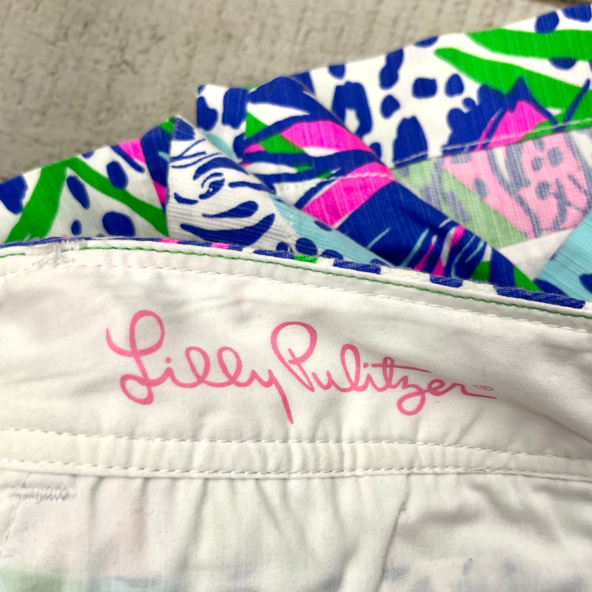 Effortlessly chic Lilly Pulitzer shorts in a vibrant blue and pink combo, size 6 available now.