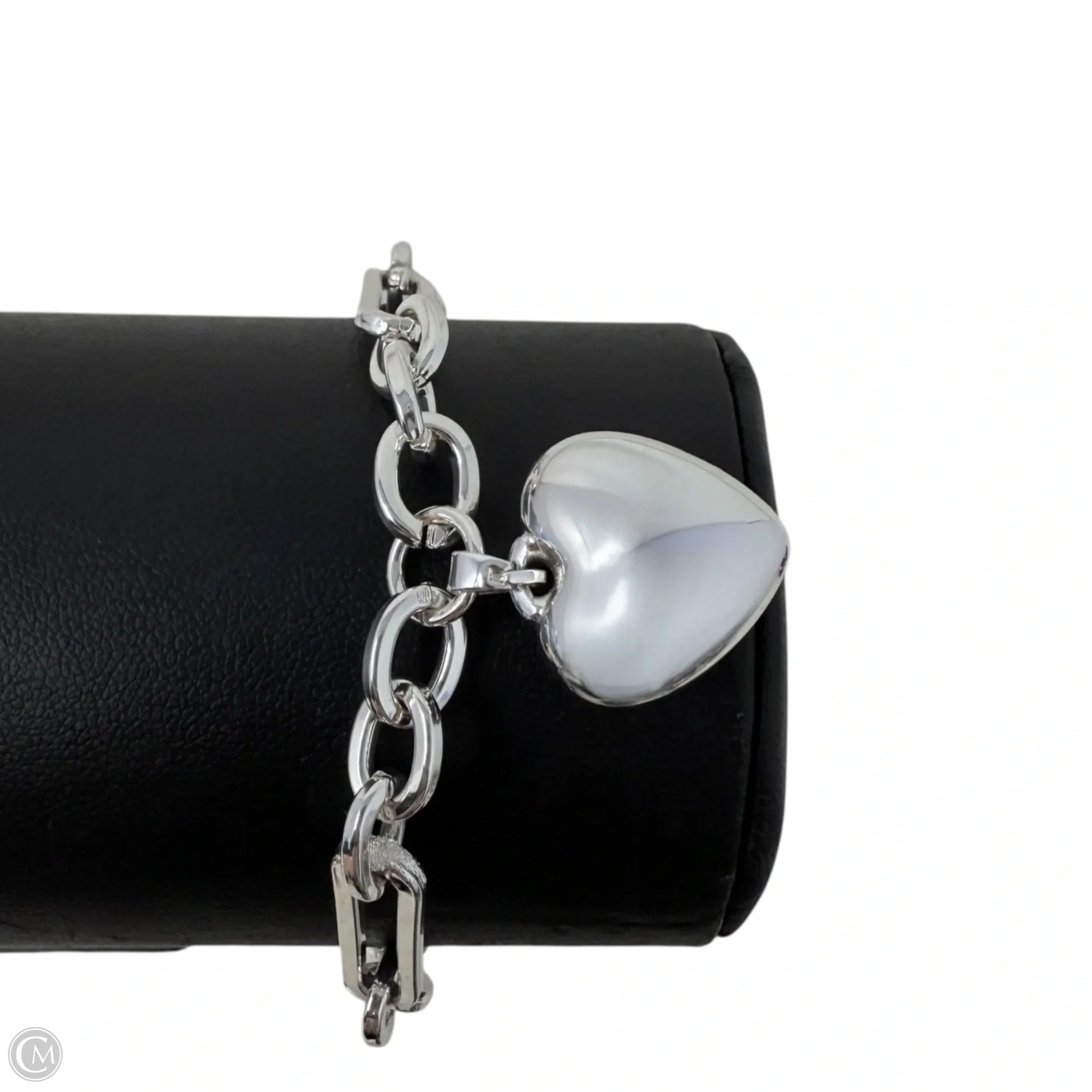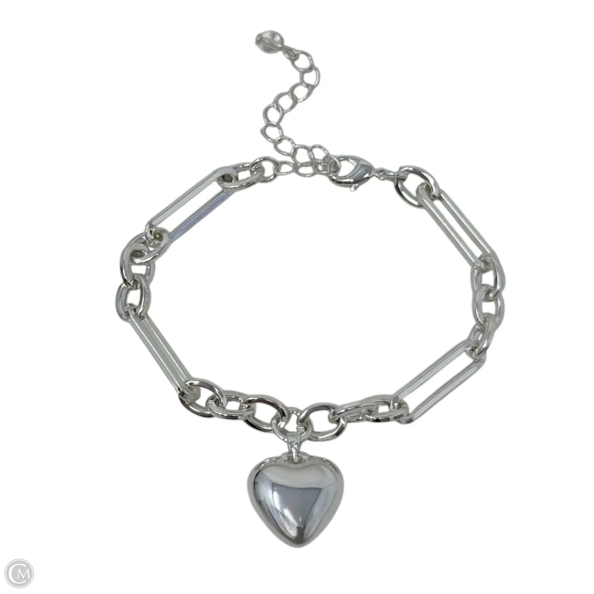 Silver Tone Paperclip Chain Puffy Heart Charm Bracelet