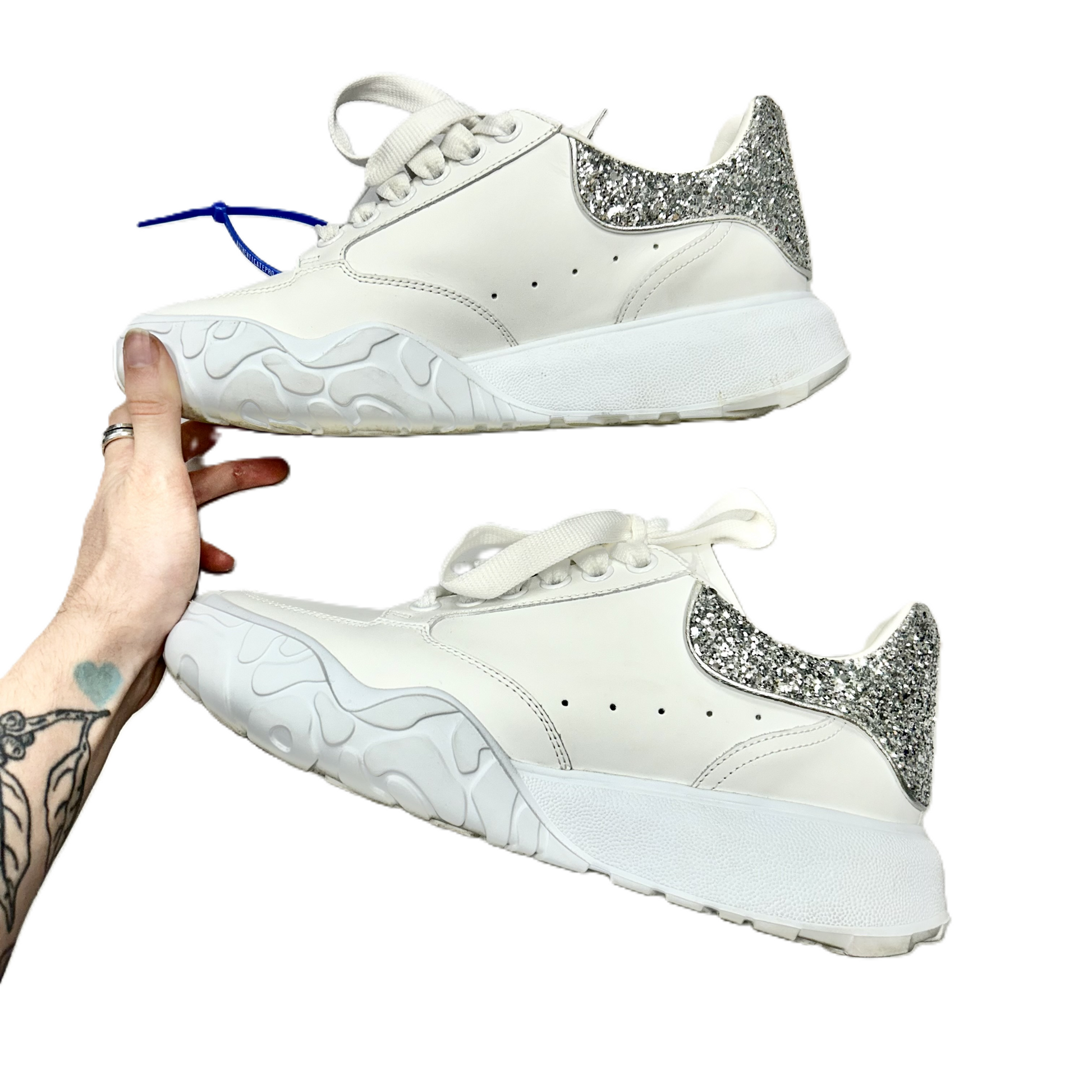 Silver & White Shoes Luxury Designer By Alexander Mcqueen, Size: 9
