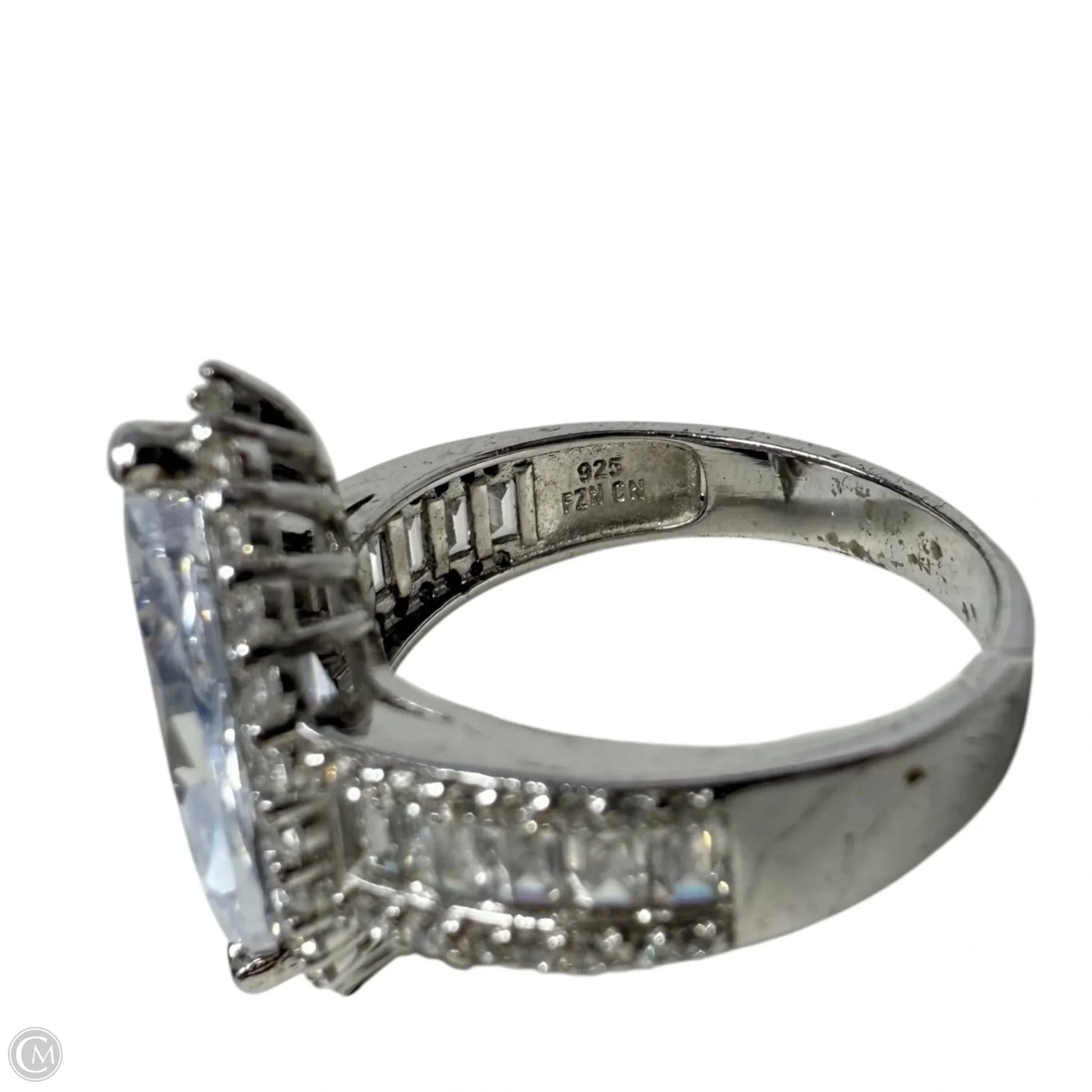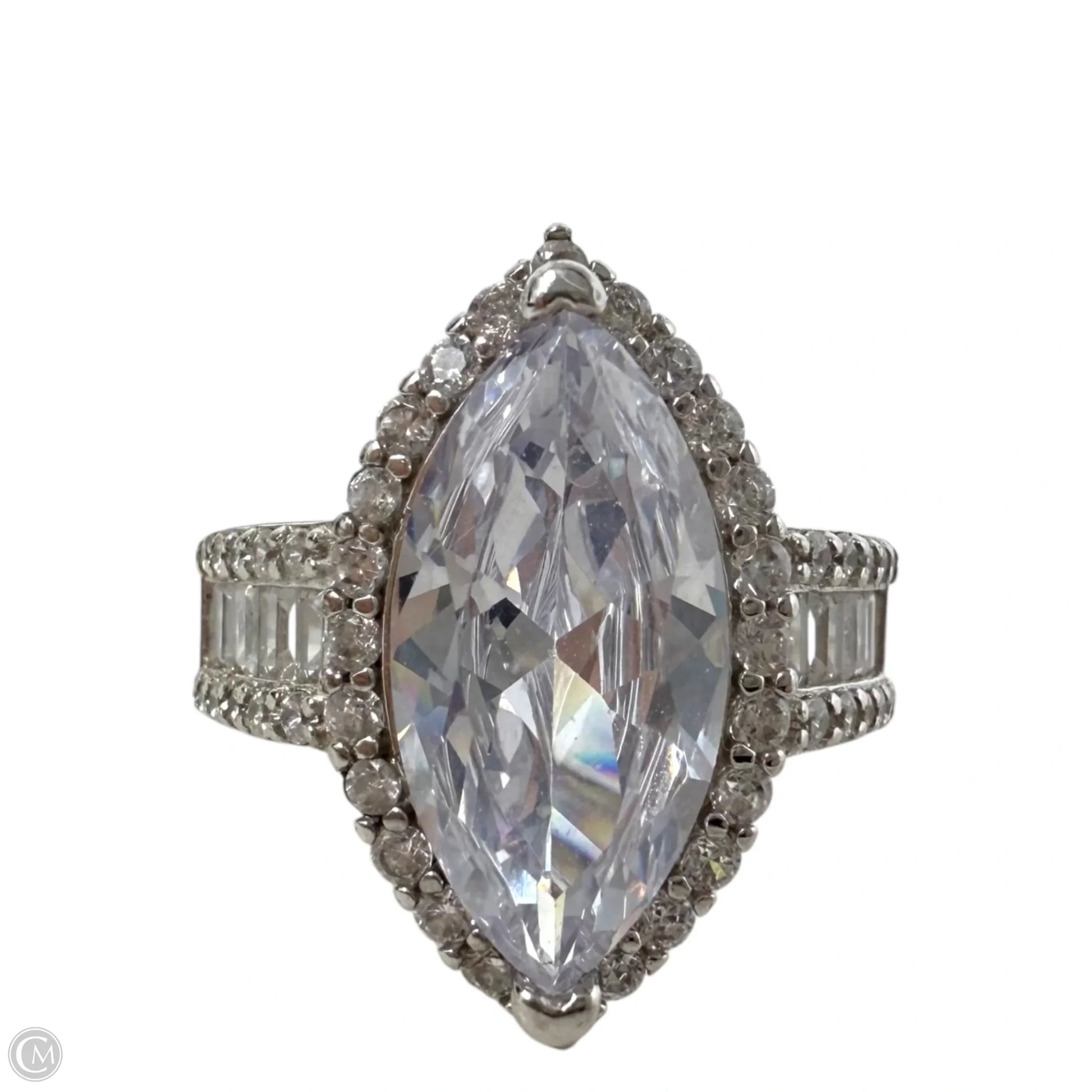 Sterling Silver Halo Baguette And Marquise CZ Ring By Clothes Mentor, Size: 9