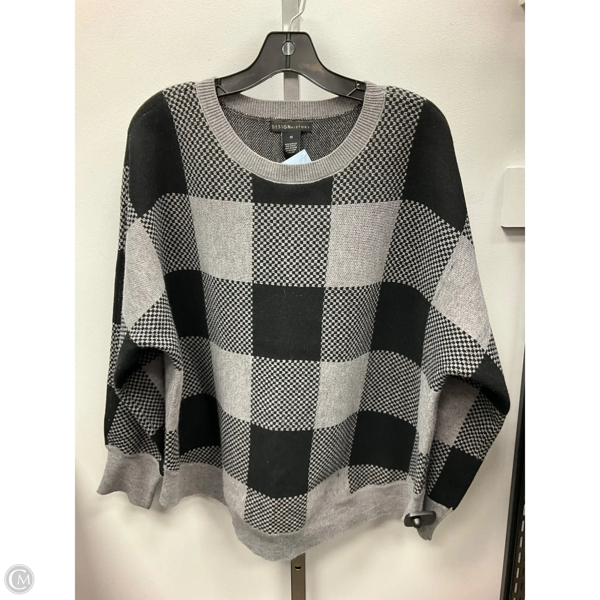 Sweater By Design History In Black & Grey, Size: 1x
