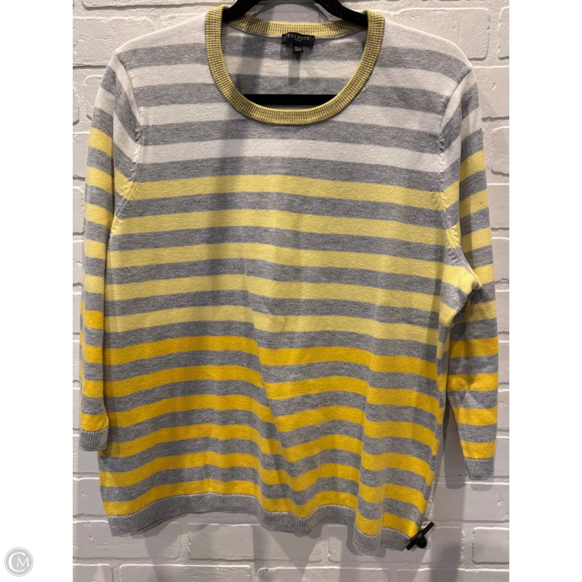 Sweater By Talbots In Grey & Yellow, Size: Xlp