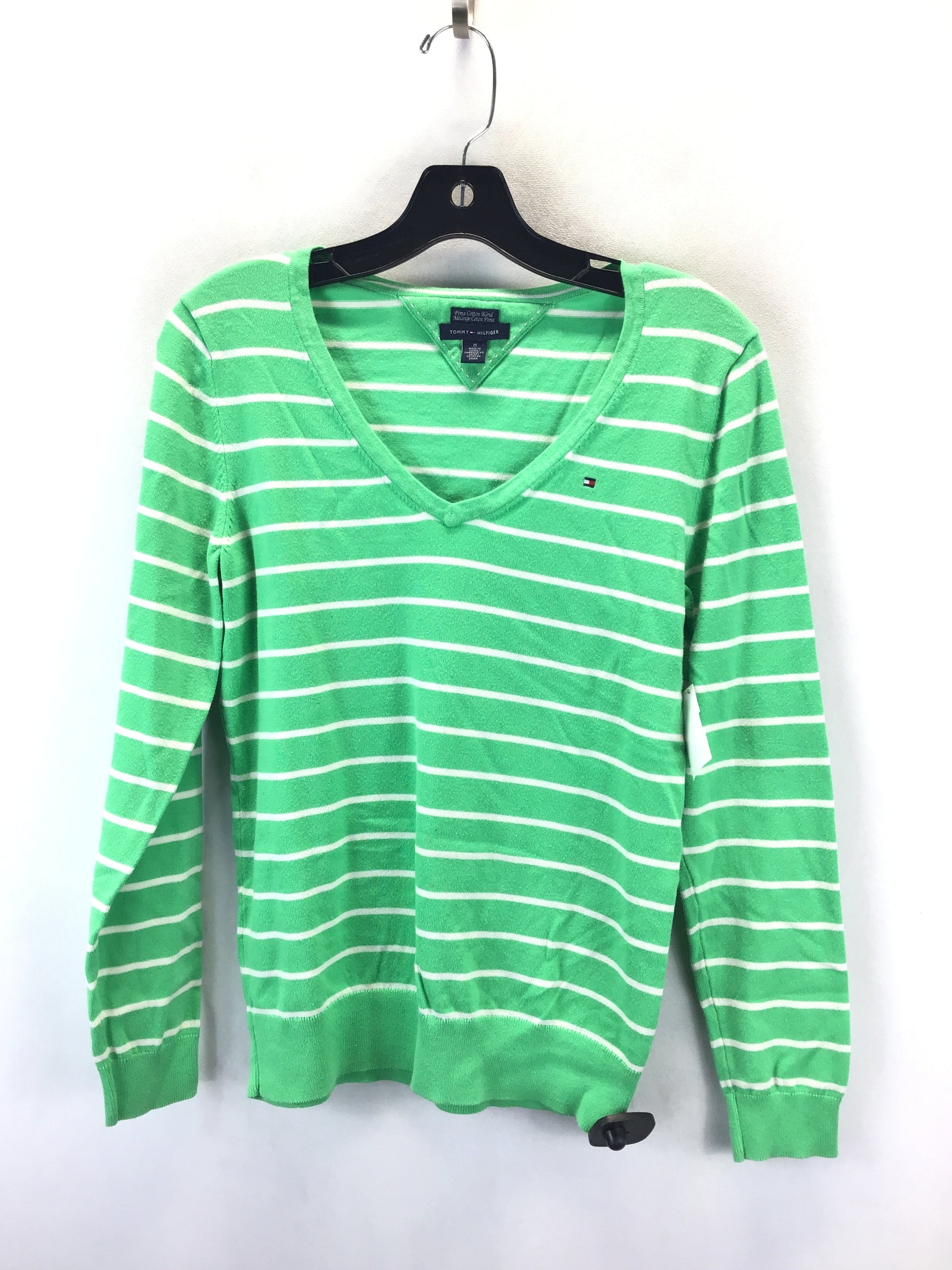 Sweater By Tommy Hilfiger In Green & White, Size: M