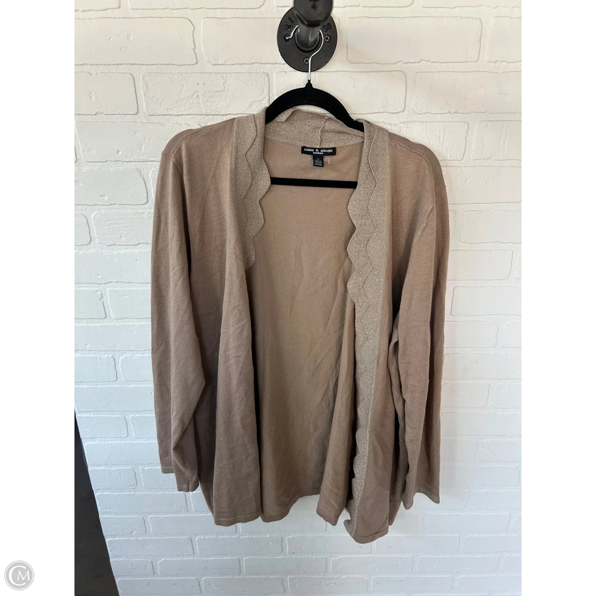 Sweater Cardigan By Cable And Gauge In Tan, Size: 1x