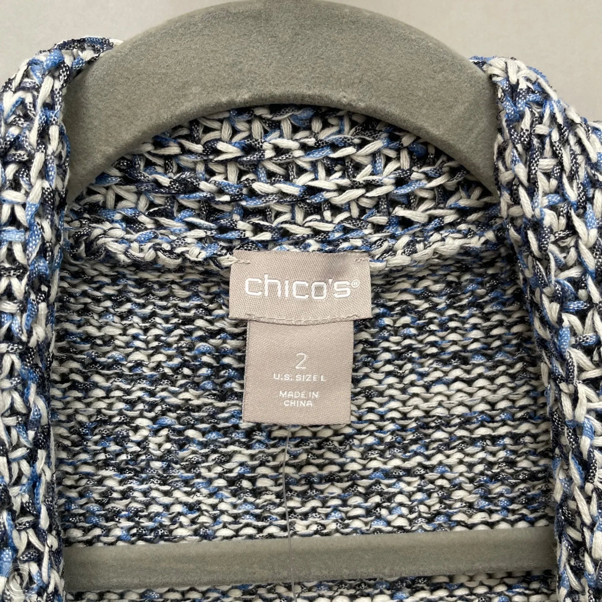 Sweater Cardigan By Chicos In Blue & White, Size: L