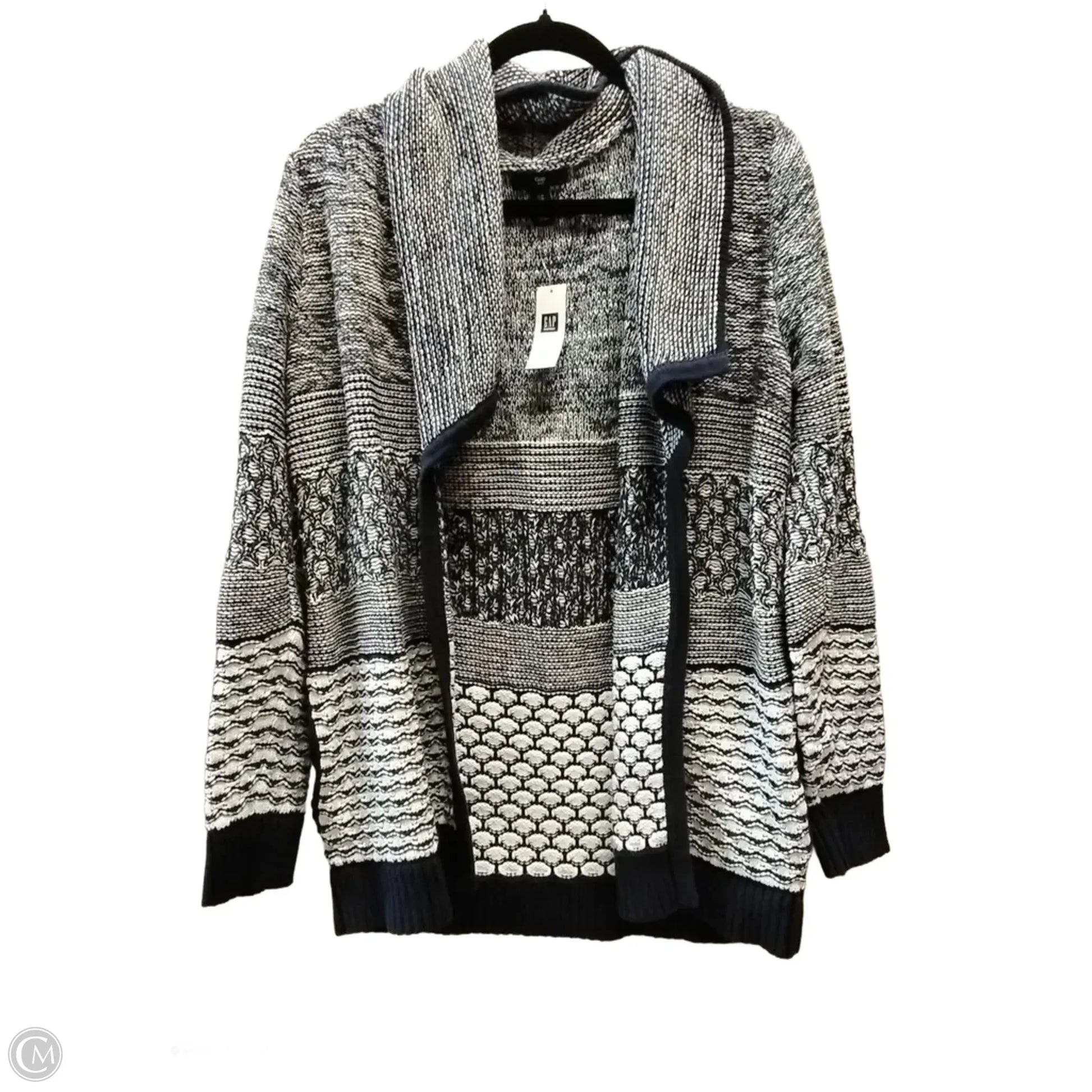 Sweater Cardigan By Gap In Blue & White, Size: M