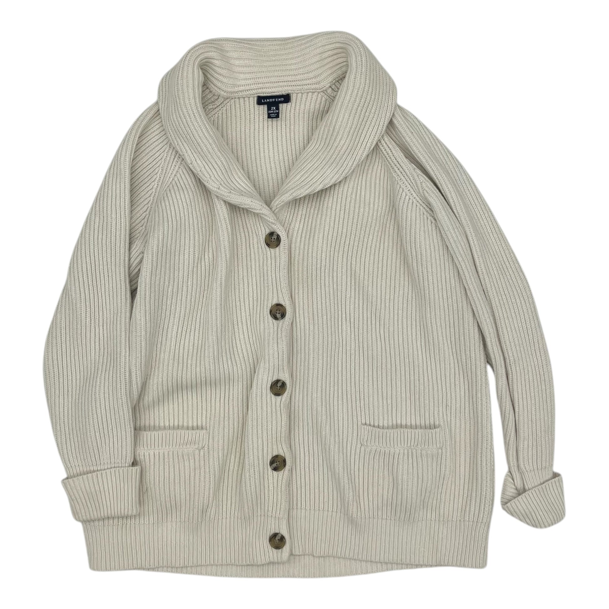 Sweater Cardigan By Lands End In Cream, Size:2X