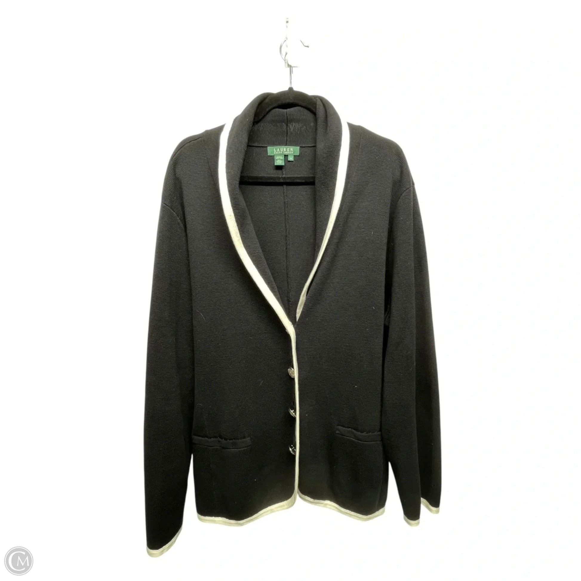 Sweater Cardigan By Lauren By Ralph Lauren In Black & White, Size: 3x