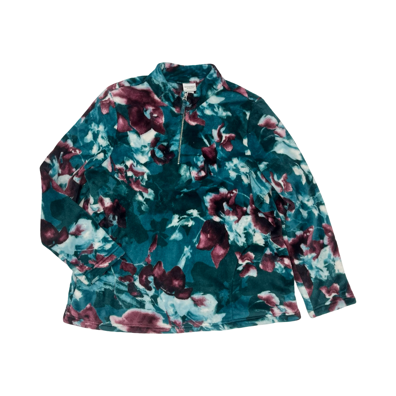 Indulge in cozy elegance with this Chicos sweatshirt collar in tranquil blue and regal purple, size XL. Luxuriously soft fabric ensures comfort and sophistication.