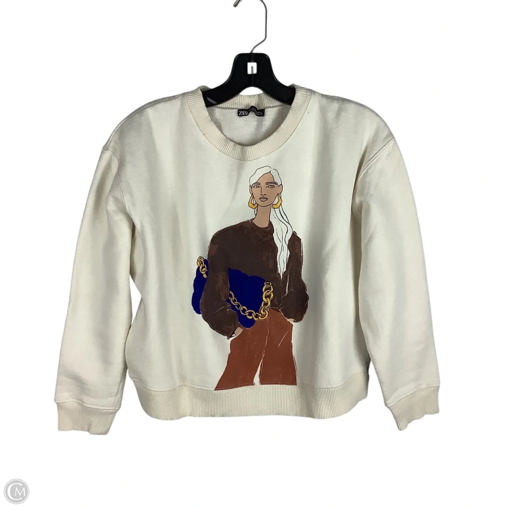 Sweatshirt Crewneck By Zara In Cream, Size: S