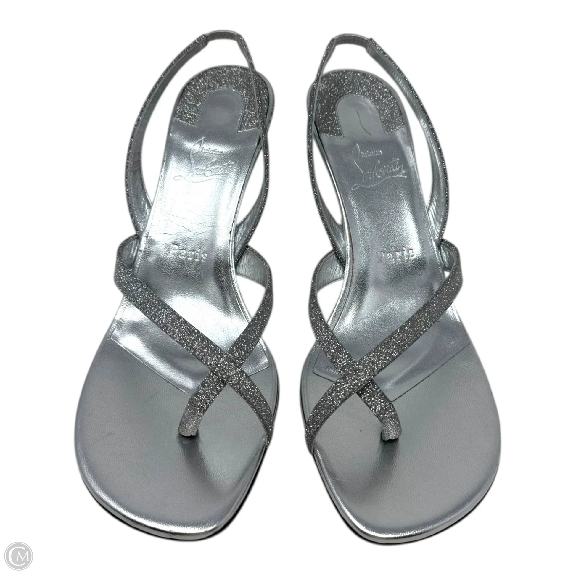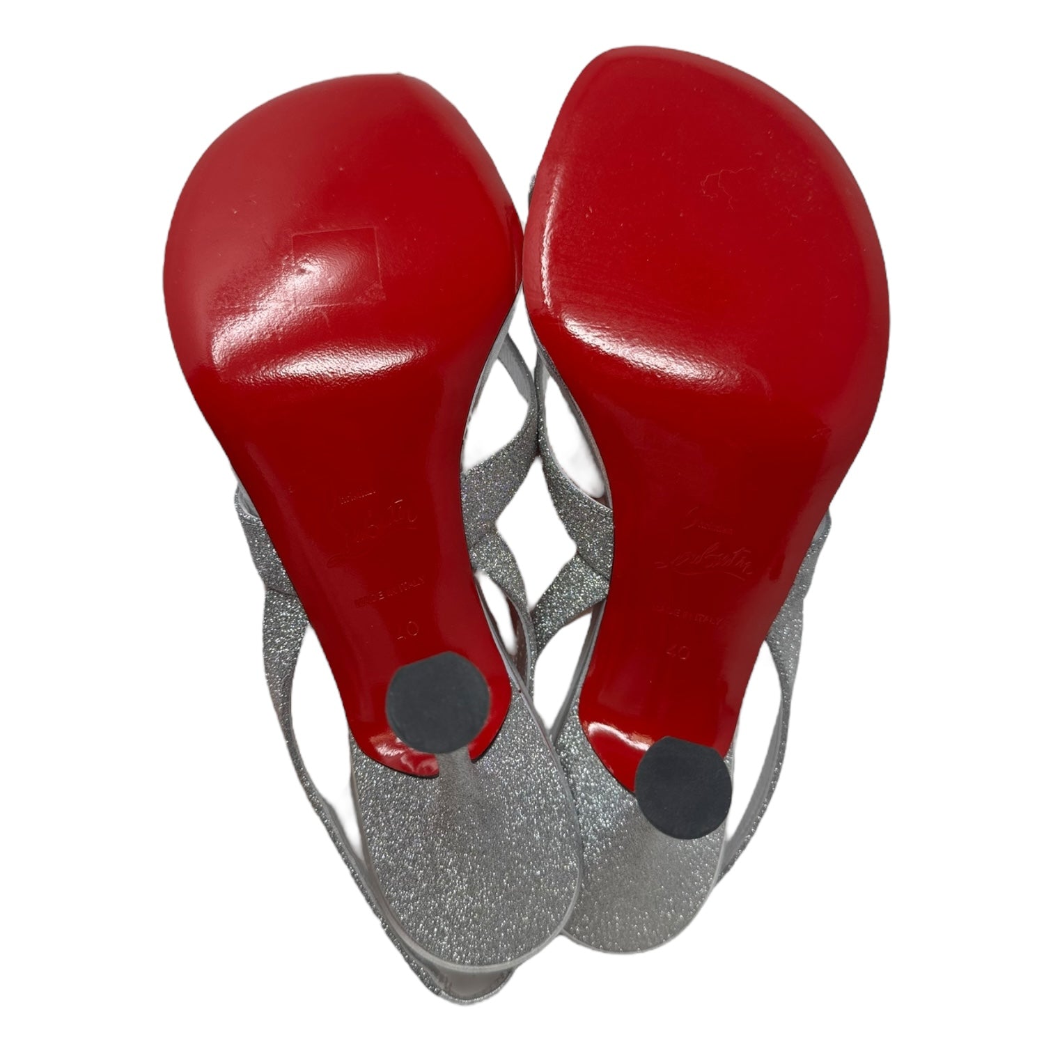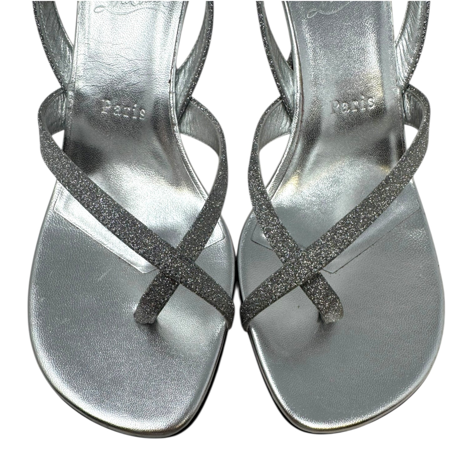 Taralita Glitter 85mm Slingback Heel Sandals Shoes Luxury Designer By Christian Louboutin In Silver, Size: 9 (IT 40)