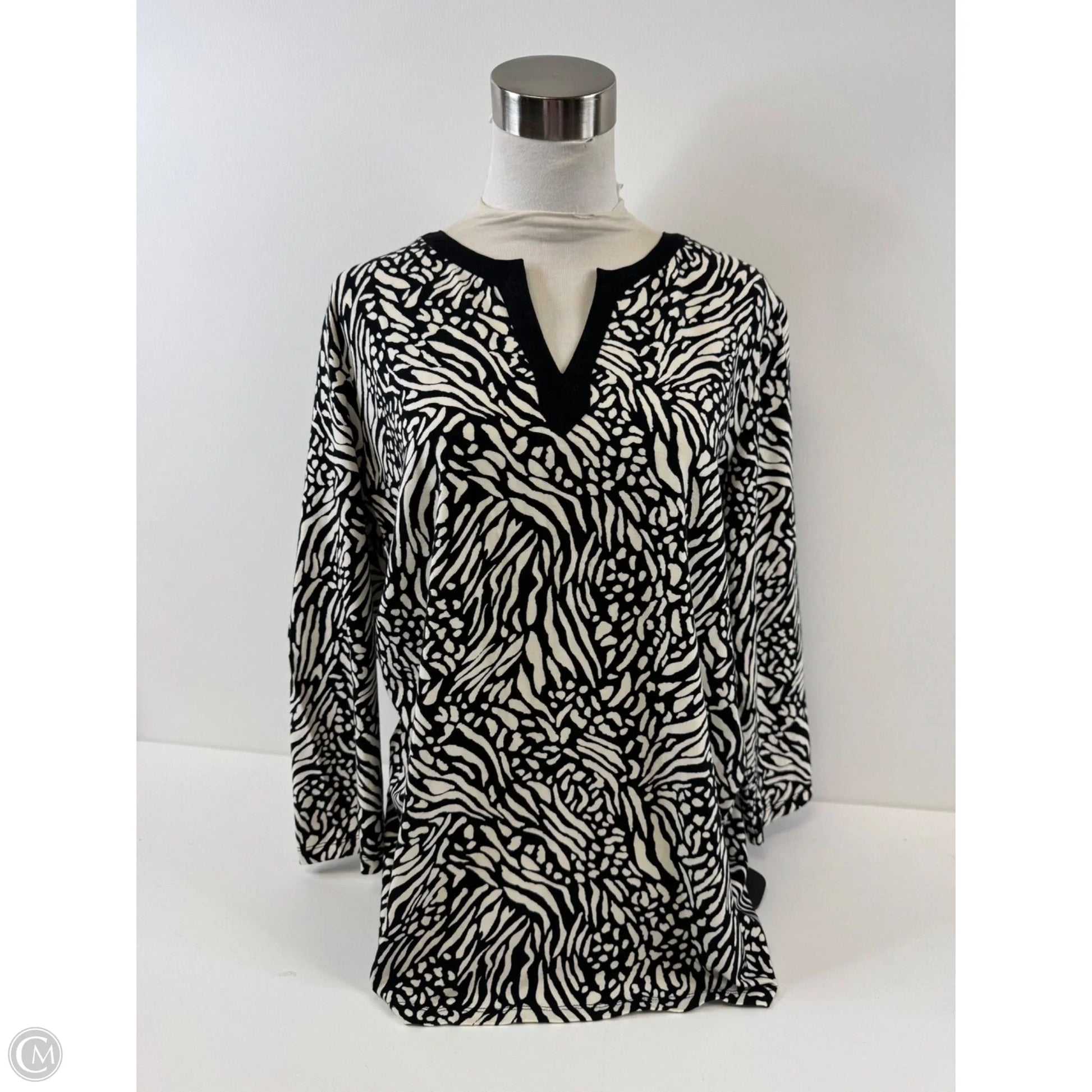 Top 3/4 Sleeve Basic By Charter Club In Black & Cream, Size: Xl