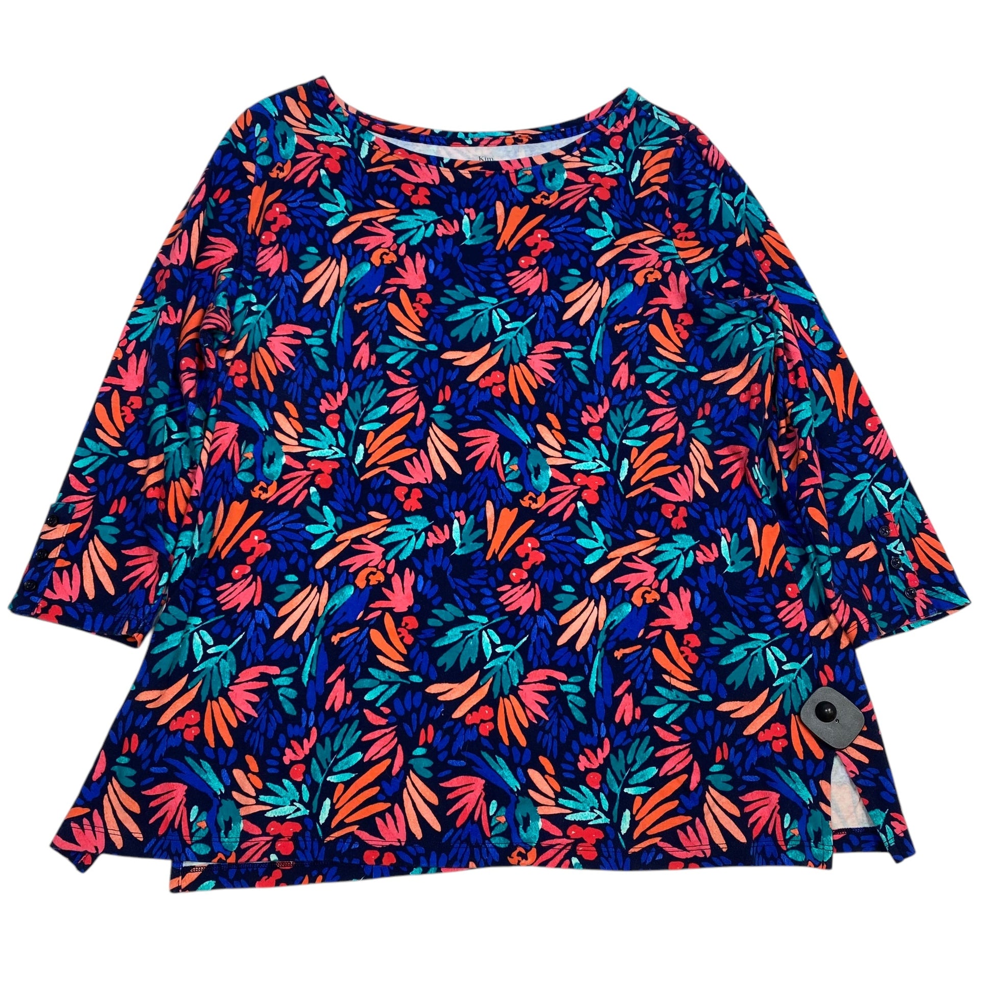 Top 3/4 Sleeve Basic By Kim Rogers In Blue & Pink, Size: Xl