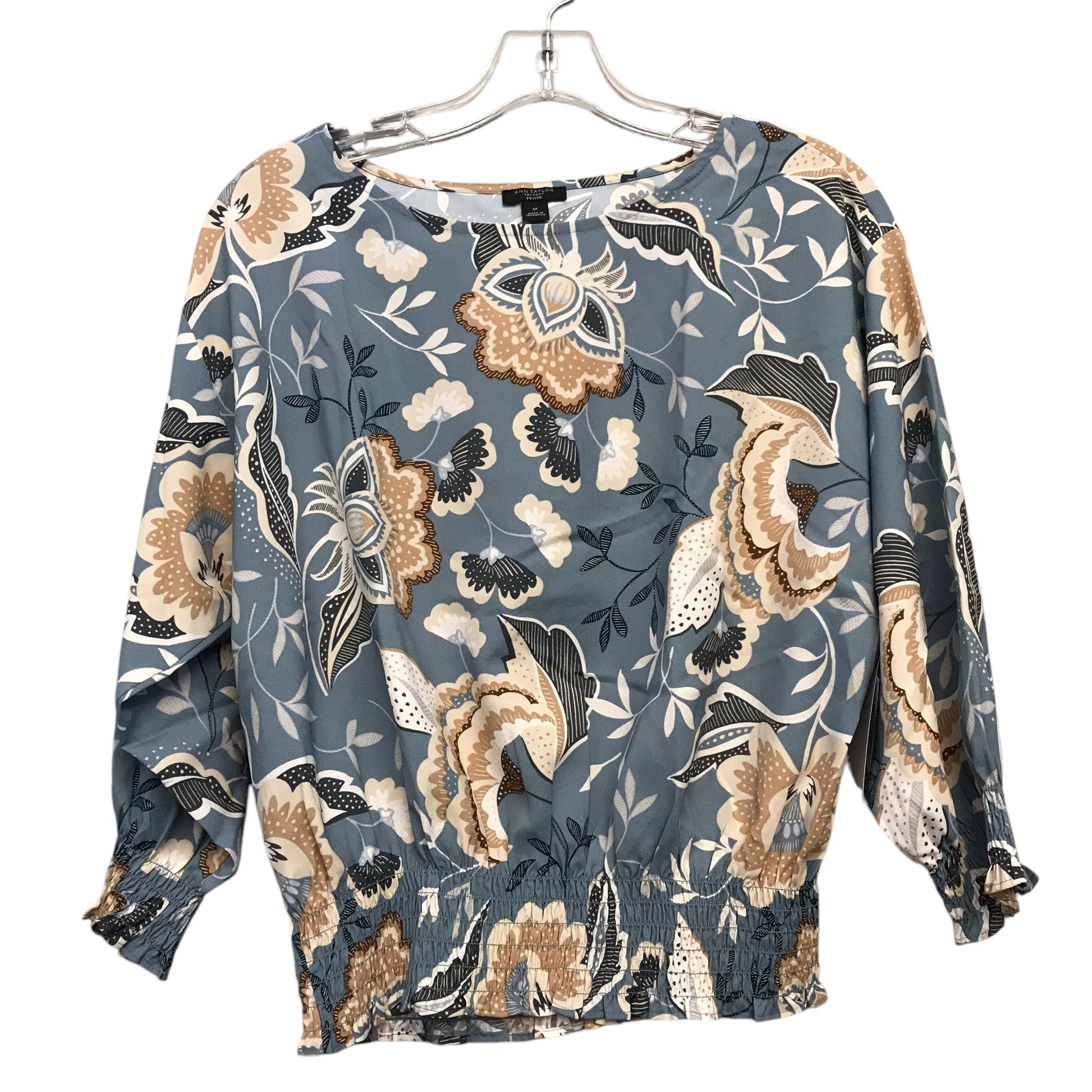 Top 3/4 Sleeve By Ann Taylor In Blue & Cream, Size:SPetite