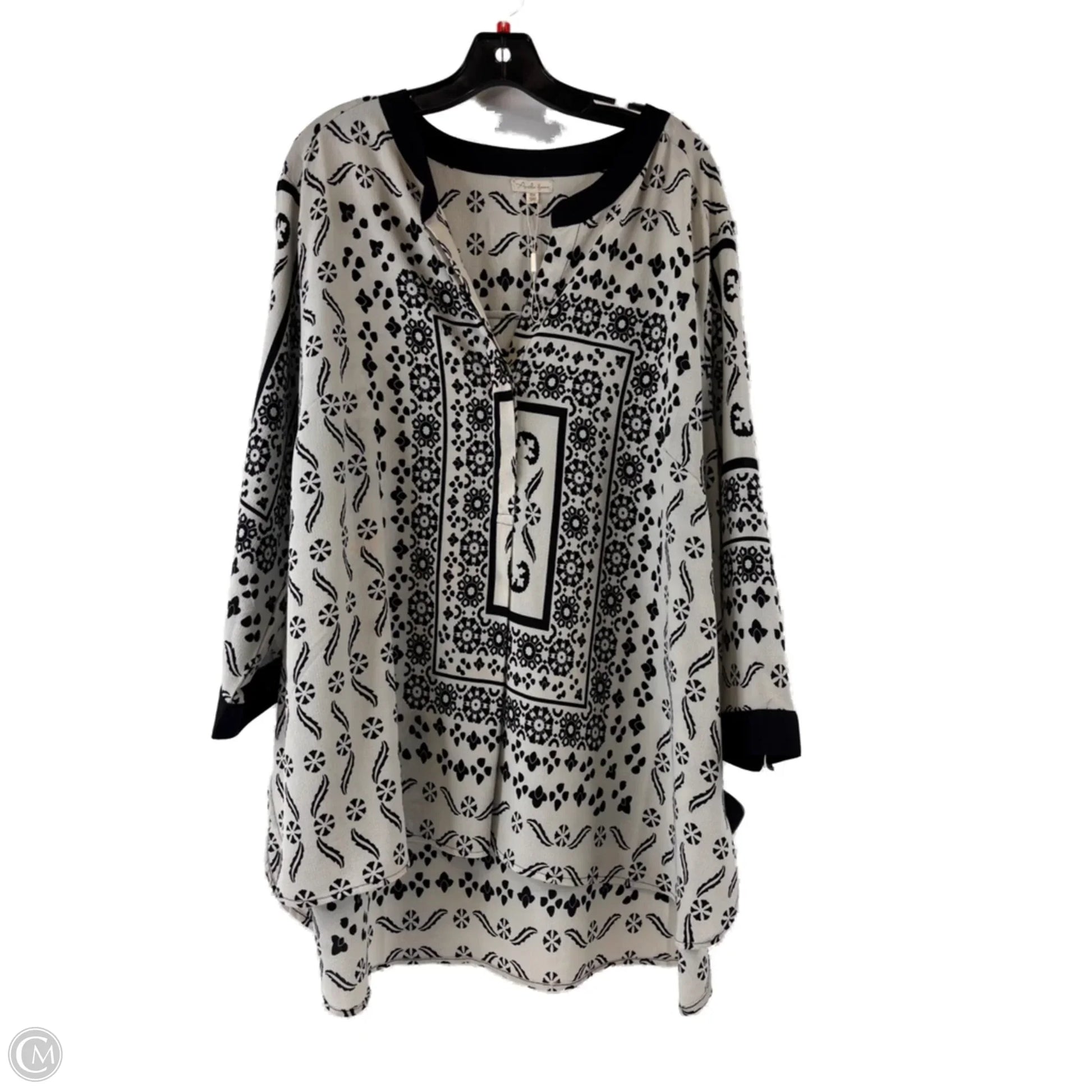 Top 3/4 Sleeve By Antilia Femme In Black & Grey, Size: 3x
