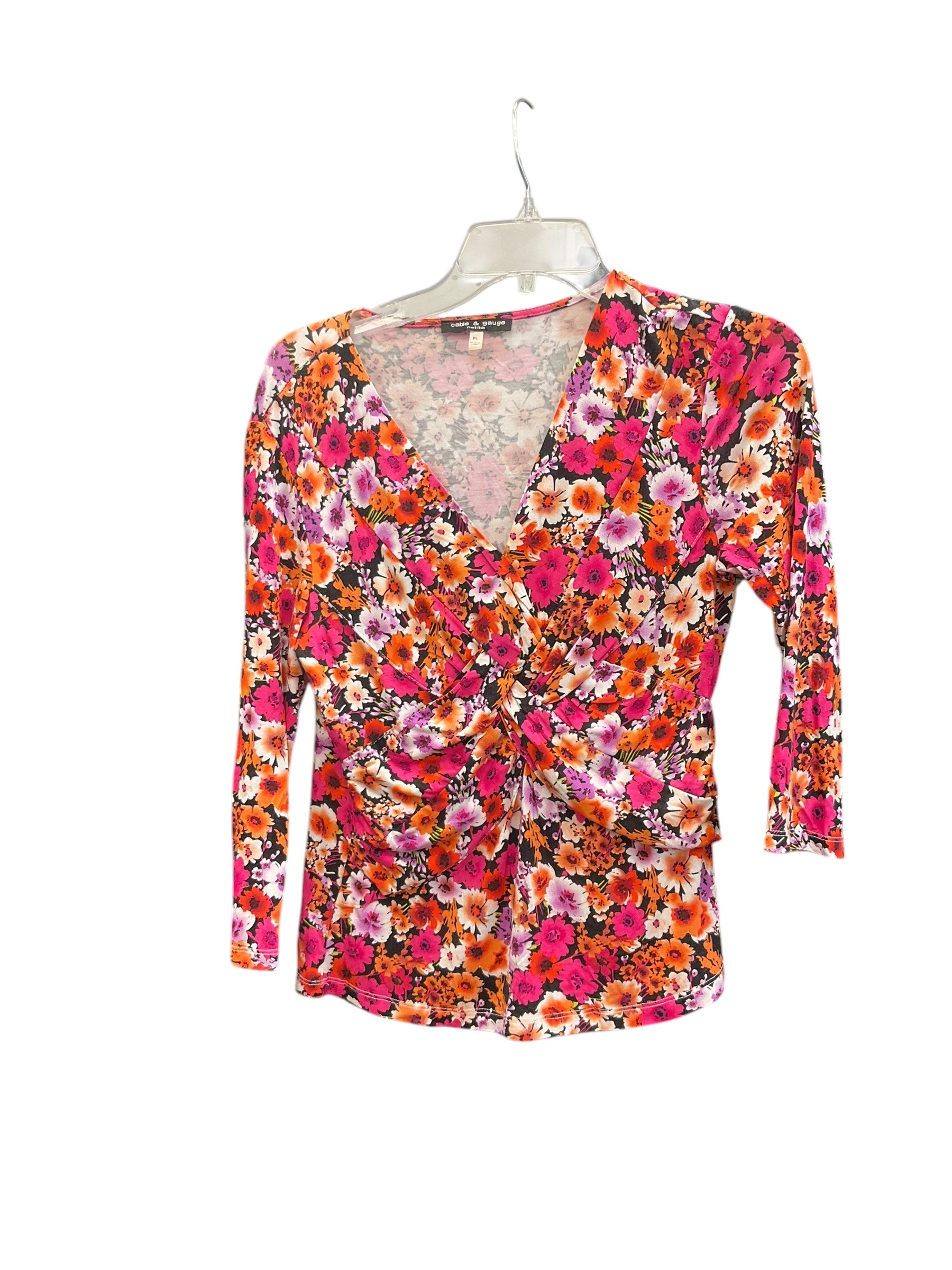 Top 3/4 Sleeve By Cable And Gauge In Floral Print, Size:Lp