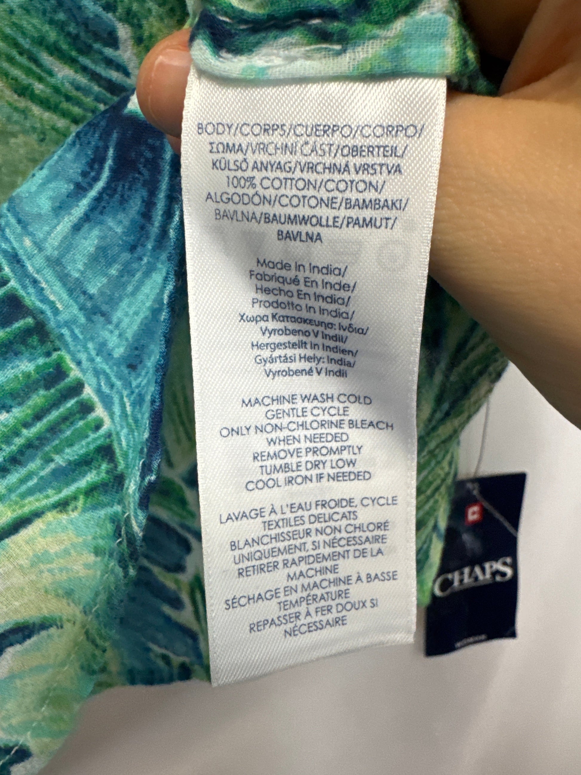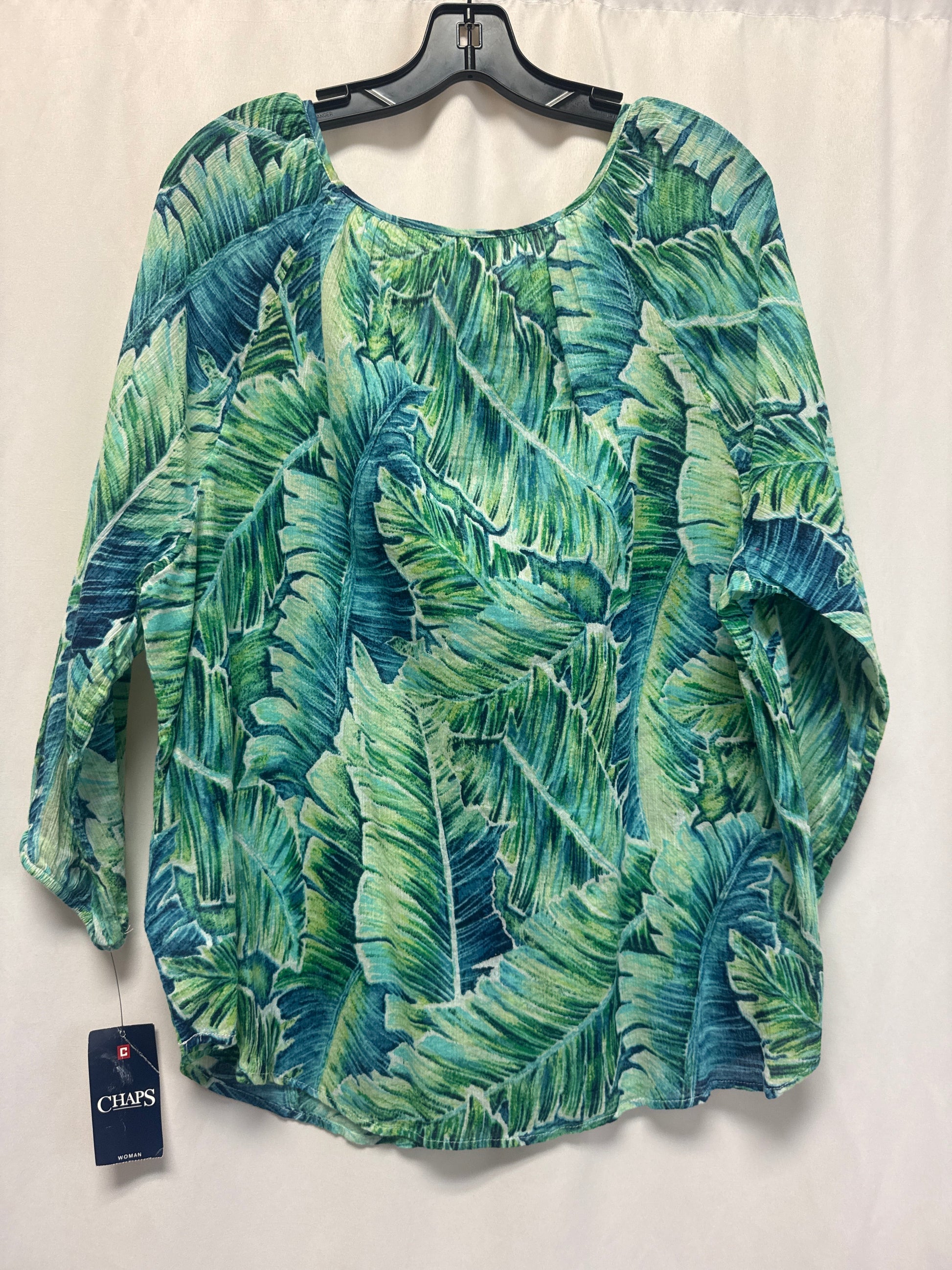Top 3/4 Sleeve By Chaps In Blue & Green, Size: 1x
